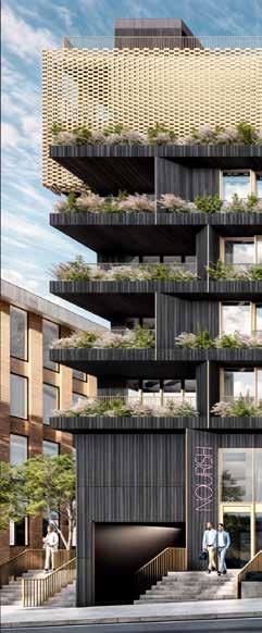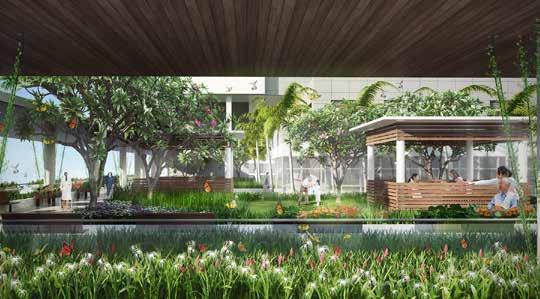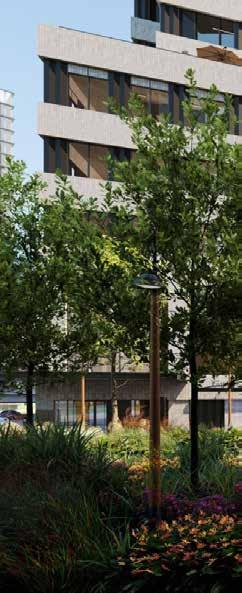 Adjacent to 111 Olive, a vacant parking lot will be transformed into 300 Banyan – a 12-storey bold, geometric glass tower that will house Class A office space with an expansive amenity floor equipped with a state-ofthe-art indoor/outdoor gym and private outdoor terraces can be used by tenants year-round. The tower will also include an elevated parking garage above ground floor retail, lobby and food and beverage offerings.