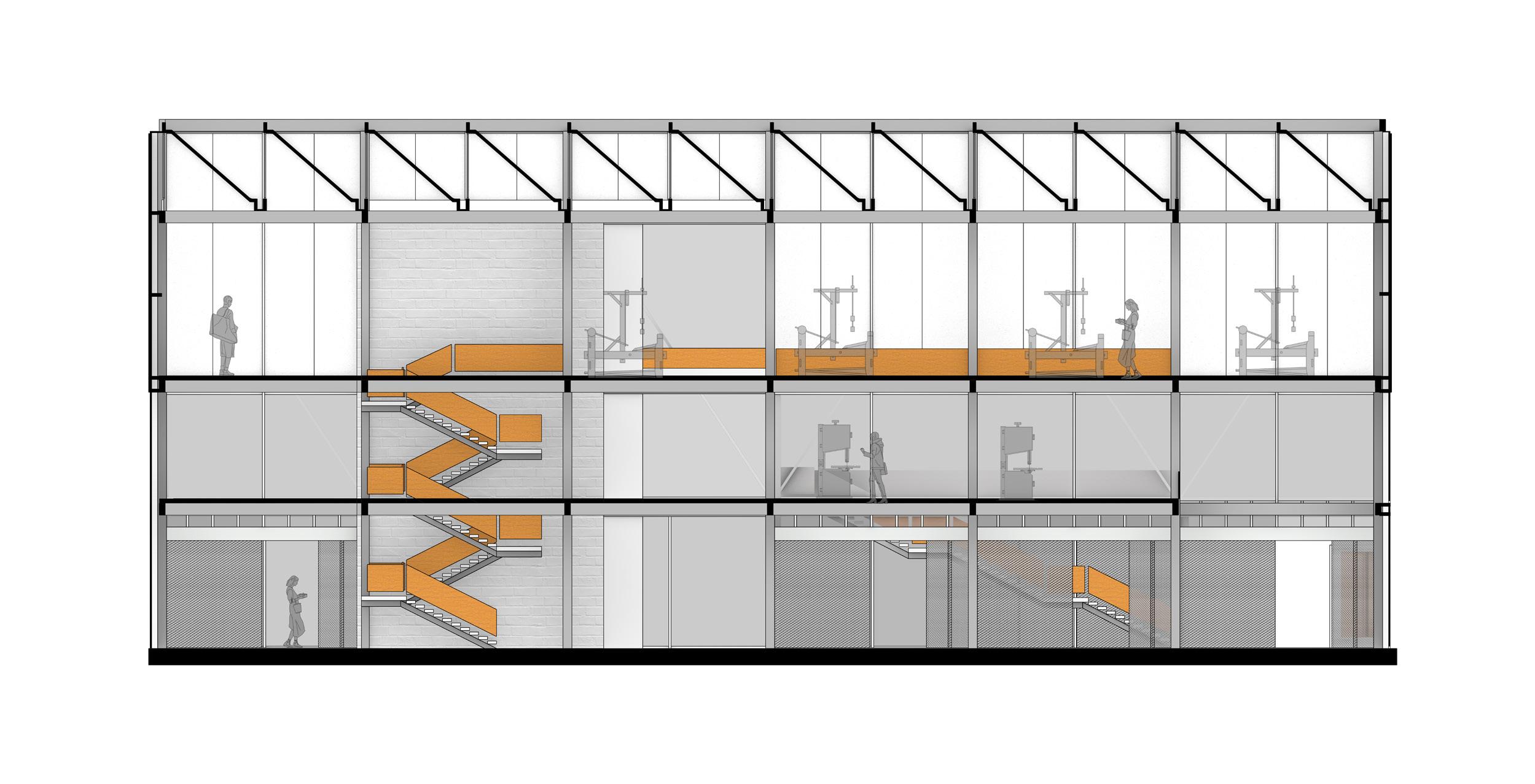 In a notoriously ungentrifiable neighborhood, this project creates serene spaces for woodworking, painting and making ceramics a. It relies on varying degrees of transparency and permeability to invite residents to “come take a peek”, with the idea that literal visibility will be most effective in encouraging engagement.