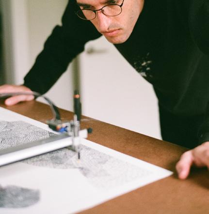 2 3 4 6 7 8 9 5 INTERFACE OF VIEWING 1 2 3 4 5 6 7 8 9 Drawings are traced over and set into frames. AARON creates paintings as a performance which are then framed for display. The sequence of screens with the videos sit in a dark gallery for viewers to walk through. Images and videos are projected onto the surfaces of a large room, mocking frescos on the ceiling of the Sistine Chapel. The pulley system controls the movement of the patterns on the screen, and viewers interact with the artwork. The recorded film is project on a large screen in an enclosed room. Light projects wash the surfaces of an enclosed room, dissolving orthagonal boundaries. Handmade prints are either re-digitized into NFTs or framed for display.