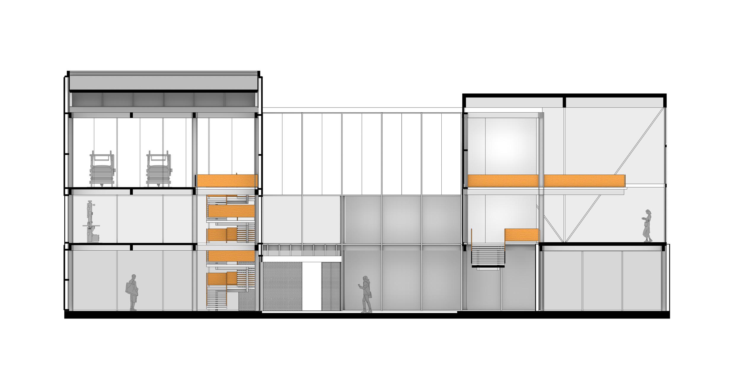 Eyebeam Institute (DS+R) proposed an infrastructural “ribbon” to wrap around galleries.