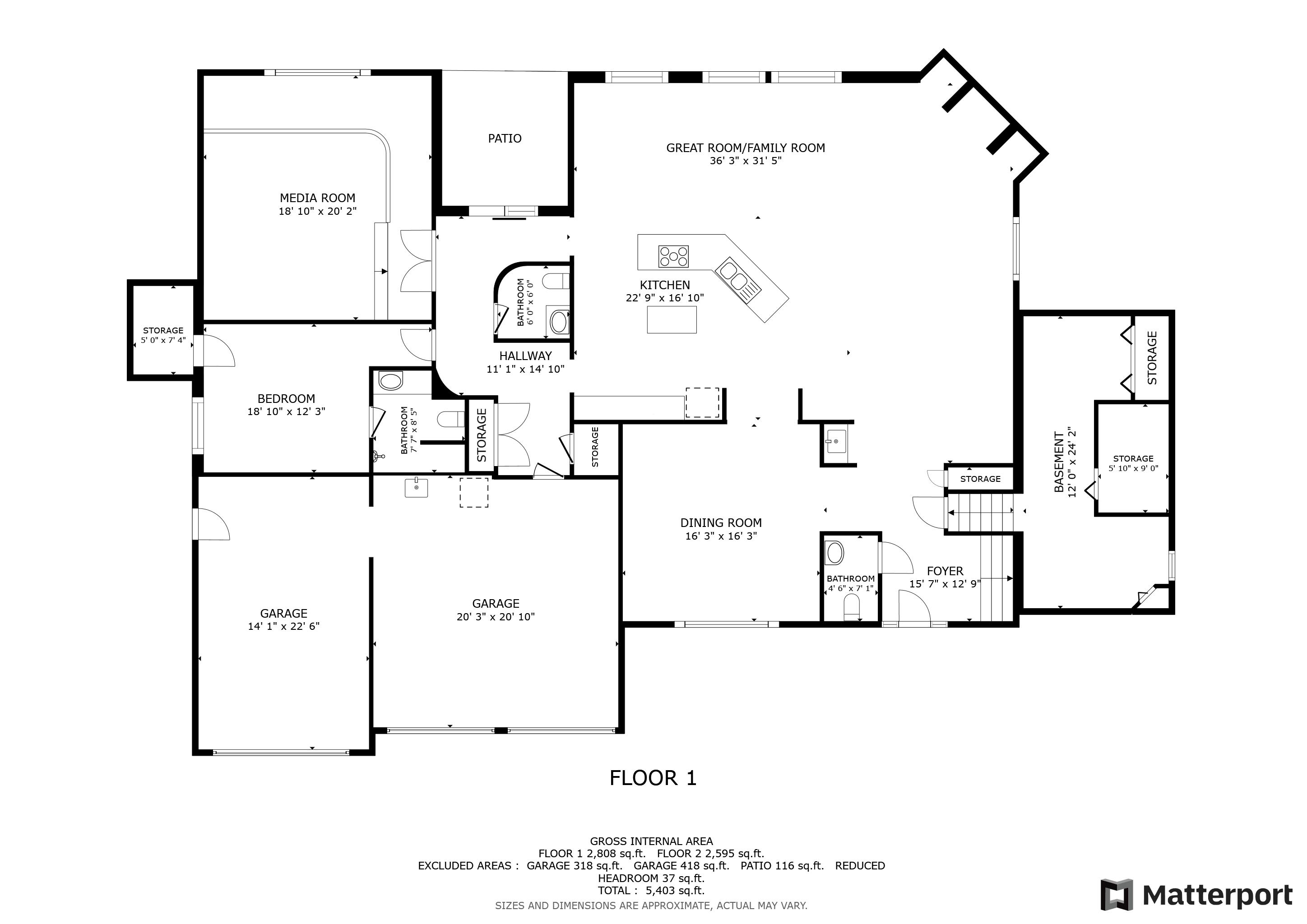 A first-floor in-law suite with a private bath adds versatility, while the formal living and dining rooms offer sophisticated spaces for gathering. The multimedia room provides built-in seating and a projector screen for in-home entertainment. Upstairs, the luxurious primary suite includes vaulted ceilings, two walk-in closets, and a spa-like bath with a Jacuzzi tub and heated floors. Three more bedrooms, a full bath, a home office, and a large storage room complete the second level.