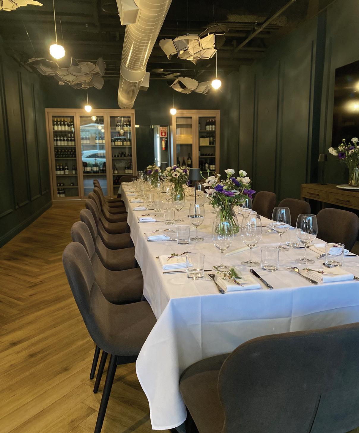 For true gourmands who want a glimpse of the kitchen action, book the Chef’s Dining Room for a group of 34 or fewer. You will have the audio-visual capabilities, and can combine this space with the Cannon Room, for up to 65 guests. If you are planning a reception-style soiree, the Dominick Room setup includes a mix of high-top tables and booth seating for a maximum of 40 guests.