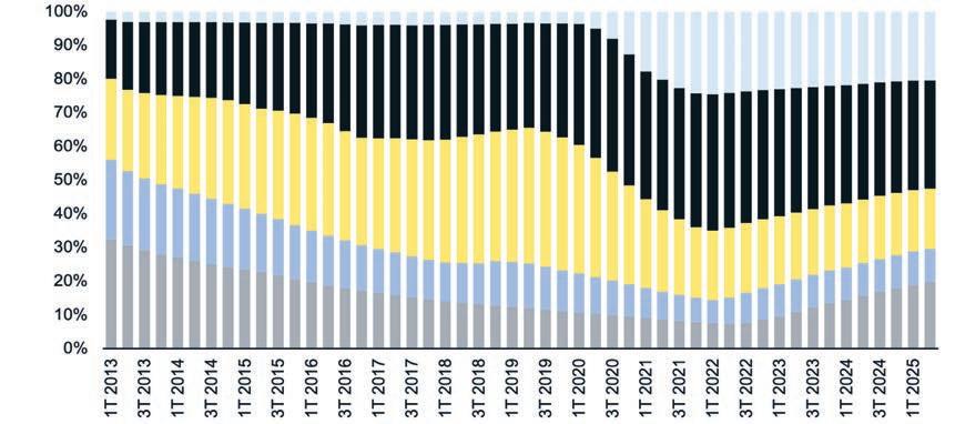 Porcentaje de las hipotecas residenciales pendientes por tasa de interés hipotecario en el momento de la originación