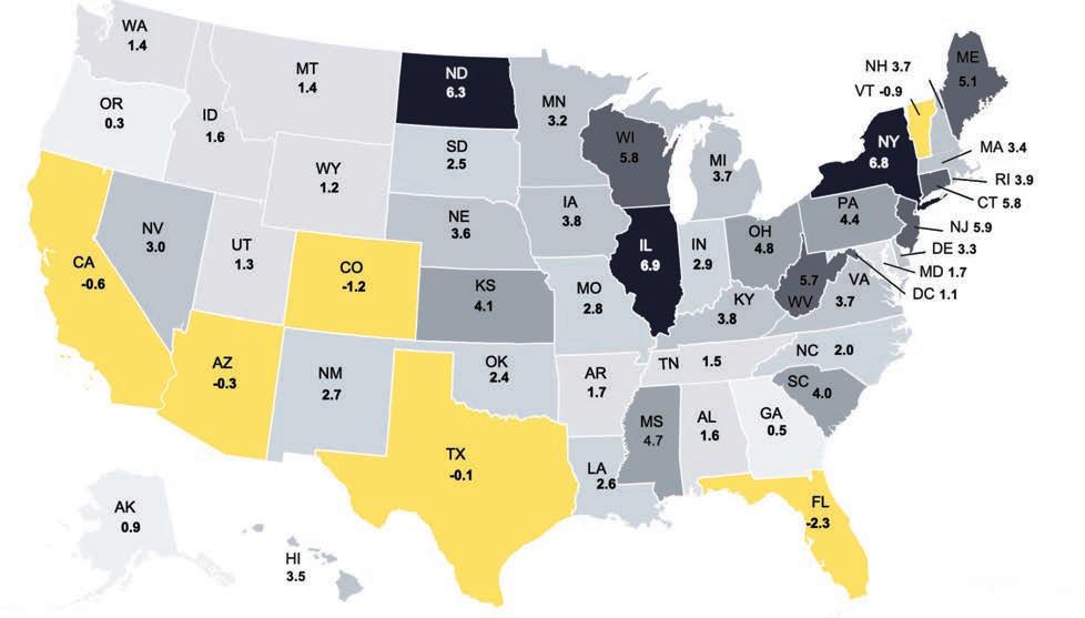 » Las mayores ganancias aparecen en las regiones del sur y el oeste.