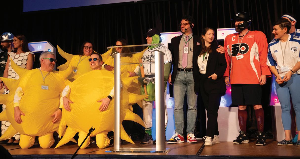 We had retro tennis players, the crew from Ted Lasso, the “sun is also a star” group, a Fantasy Football gang, an outstanding homemade soccer ball dress accompanied by Timber Joey, and a large group of folks dressed in custom PJA blue retro ‘80s tracksuits. This year’s costume contest winner was Yehuda Gruenberg, dressed as a five-athlete star, representing different sports from head to toe. The entire evening was a slam dunk, with laughter and applause filling the room.
