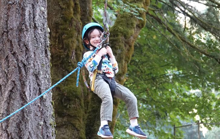 their balance and cooperation on a low ropes course and got to take a thrill ride on a treetop swing. Throughout the weekend, kids delighted themselves, (and their parents) by trying new adventures - going out in a boat, supervised but independent, or climbing onstage to lead campfire songs.