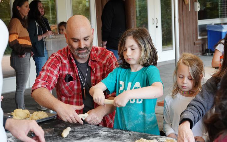 Just before the rainy season settled in for the fall, 31 PJA families, with students ranging from preschool through middle school, descended on Camp Solomon Schechter for PJA’s 5th (nearly annual) family camp weekend. PJA Family Camp is an opportunity to connect with our school kehillah (community) over shared meals, aquatic adventures, hikes, games, and Gaga. Staff and volunteers led programming throughout the weekend, including challah braiding for Shabbat dinner, a Bog Jog, Moms’ Hike, Gaga, and skit-in-a-bag improv on an amphitheater stage. And it was a special treat to have PJA alum Zach Snyder (Class of 2006) at camp for the weekend. Zach is now a Seattle-based mental health professional who works with Camp Solomon Schechter in the summer supporting their camper care team.