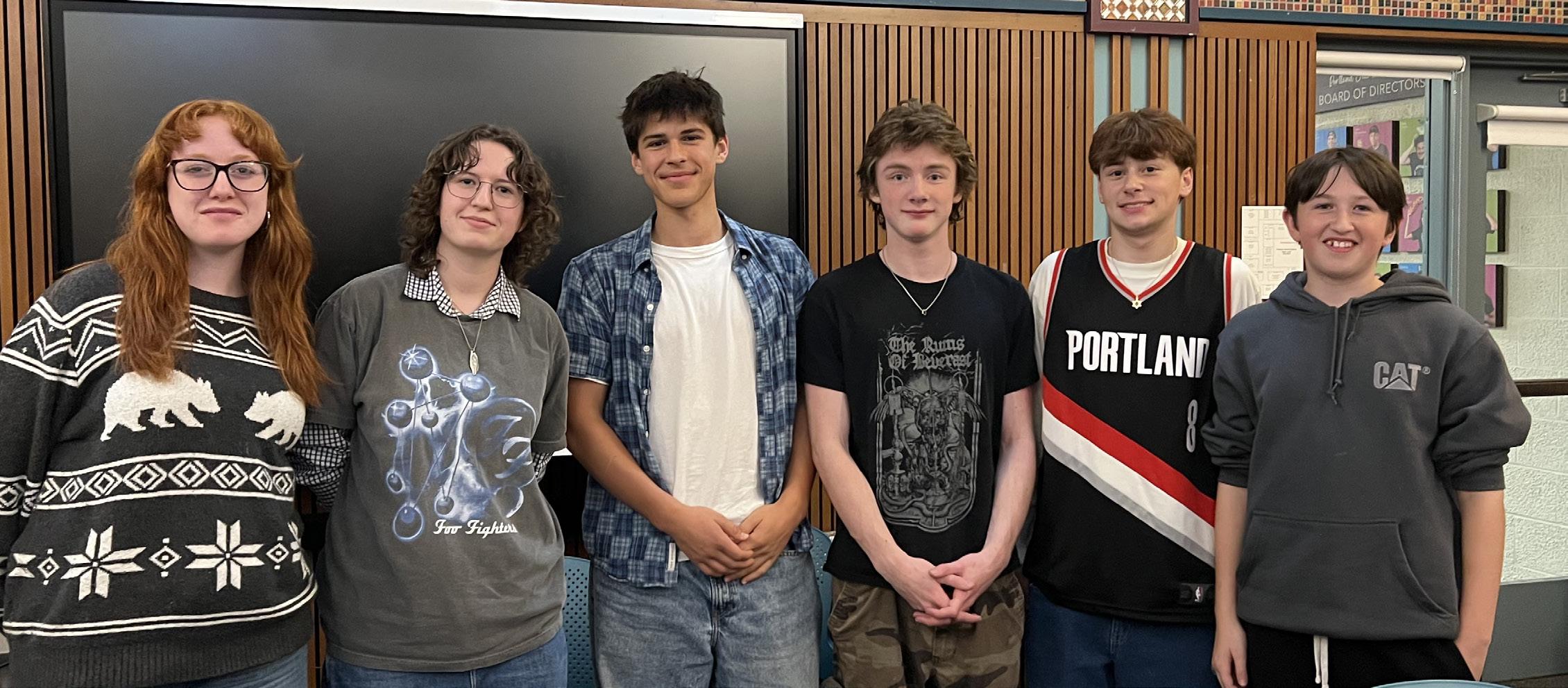 This year’s panel included Charlie Rothenberg, sophomore at Oregon Episcopal School, Sydney Rosenberg, junior at St. Mary’s Academy, Louisa Way, senior at Ida B. Wells H.S., Leo McDermid-Grupp, sophomore at Lincoln H.S., Koko Rose, sophomore at Lincoln H.S., Roger Veneklase, sophomore at Grant H.S., and Reuben Harper, sophomore at Beaverton H.S. Each student shared firsthand experiences about adapting to new expectations, building community, and carrying forward the confidence and skills they developed at PJA.