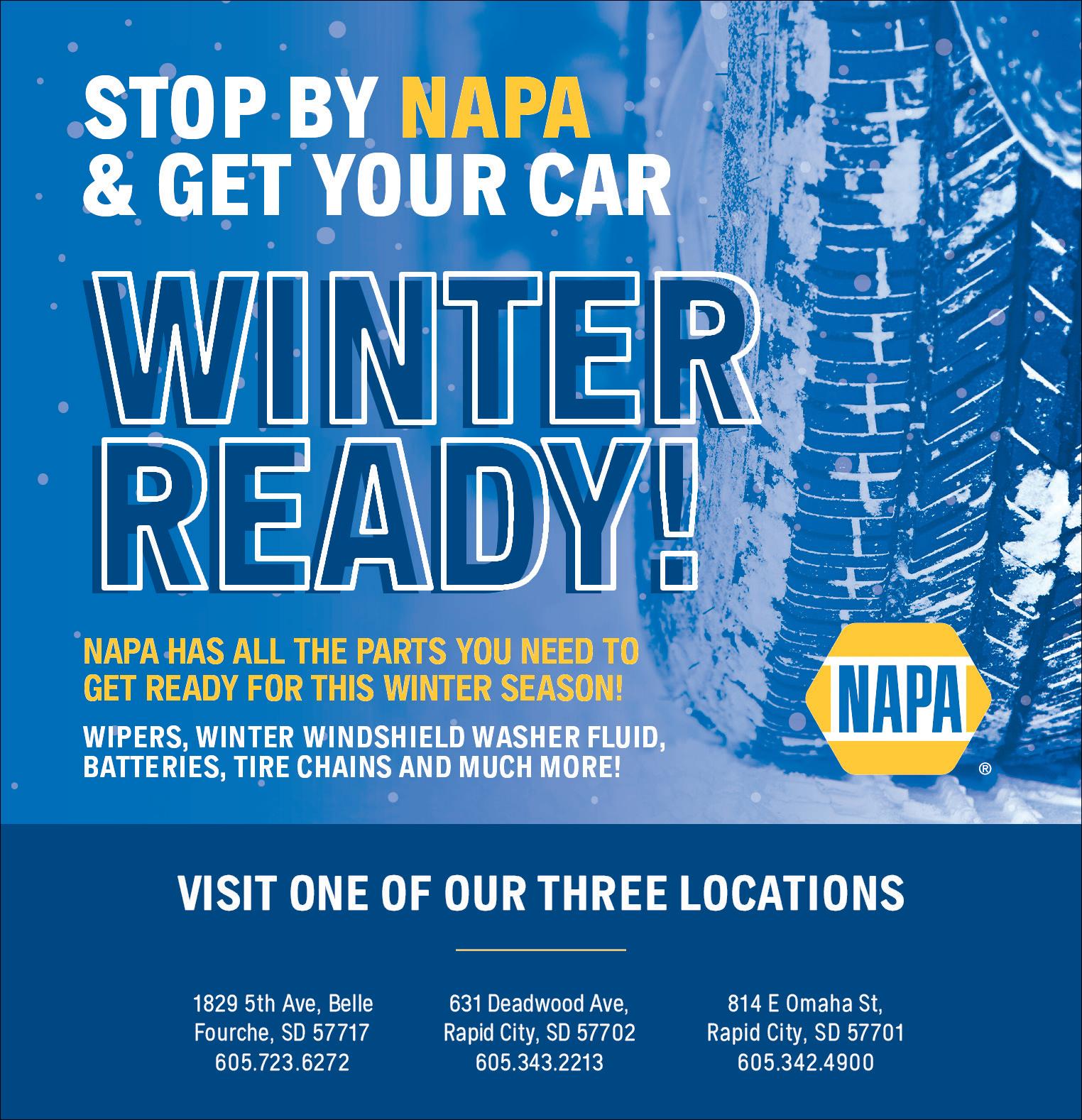 Fall 2324 Junction Ave., Sturgis, SD • 605-347-2663 Stop in anytime for helpful service and everyday low prices on the quality brands you know and trust! Tools, Parts & All the Extras MONDAY-FRIDAY 7:30 AM - 5:30 PM SATURDAY 8 AM - 4 PM | SUNDAY - CLOSED Sturgis Auto Parts, Inc. SERVING THE STURGIS AREA SINCE 2009 3441 Whitewood Rd. - Sturgis, SD 57785 - 605.347.5550 - werlingerautobodyrepair.com Hours: Monday-Friday: 8am-5pm; Saturday - By Appointment; Sunday - Closed • Collision Repair • Paint-less Dent Repair • Full Auto Body Work • Vehicle Frame Repair • Auto Glass Replacement • Towing Service WERLINGER Auto Body Repair