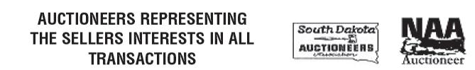 On site: 18932 Selah Lane, Belle Fourche, SD Saturday, October 15, 2022 - 9:00 a.m. OWNER: David Rosenau • Executors: Mary Rosenau and Brandon Brist Go to sdauctions.com for complete listing and photos. Riley Waltman • Broker/Auctioneer 15535 Lonesome Dove • Box Elder, SD 57719 605-381-5959 Cell • 605-754-5645 Office
