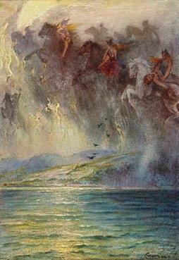 Senta, a rather overstrung Norwegian girl, and her friends sit at the spinning wheel. Although betrothed to the hunter Erik, her fancy is roused by a painting of a mysterious man. Her father returns from a voyage with a haggard guest, whom she identifies as the object of her dreams. When the two declare their mutual love, Erik storms in. The foreign sailor reveals himself as the Flying Dutchman, once more betrayed. To save him, Senta thrusts herself off a nearby cliff.