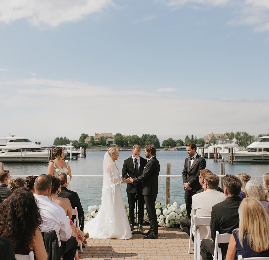 Featuring a waterfall and lush garden, the Promenade Dock provides a spectacular, picturesque setting for a wedding ceremony. Say “I Do” while nestled amongst the stunning yachts docked outside the Club and surrounded by the pristine, turquoise waters of Bay Harbor Lake. The Promenade Dock accommodates up to 220 guests with ample electrical access for musicians and officiants.