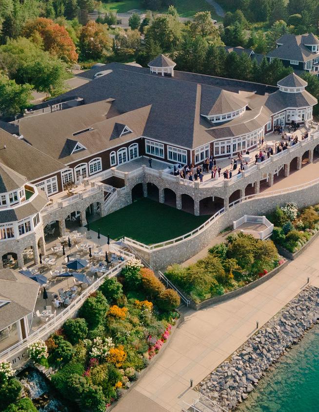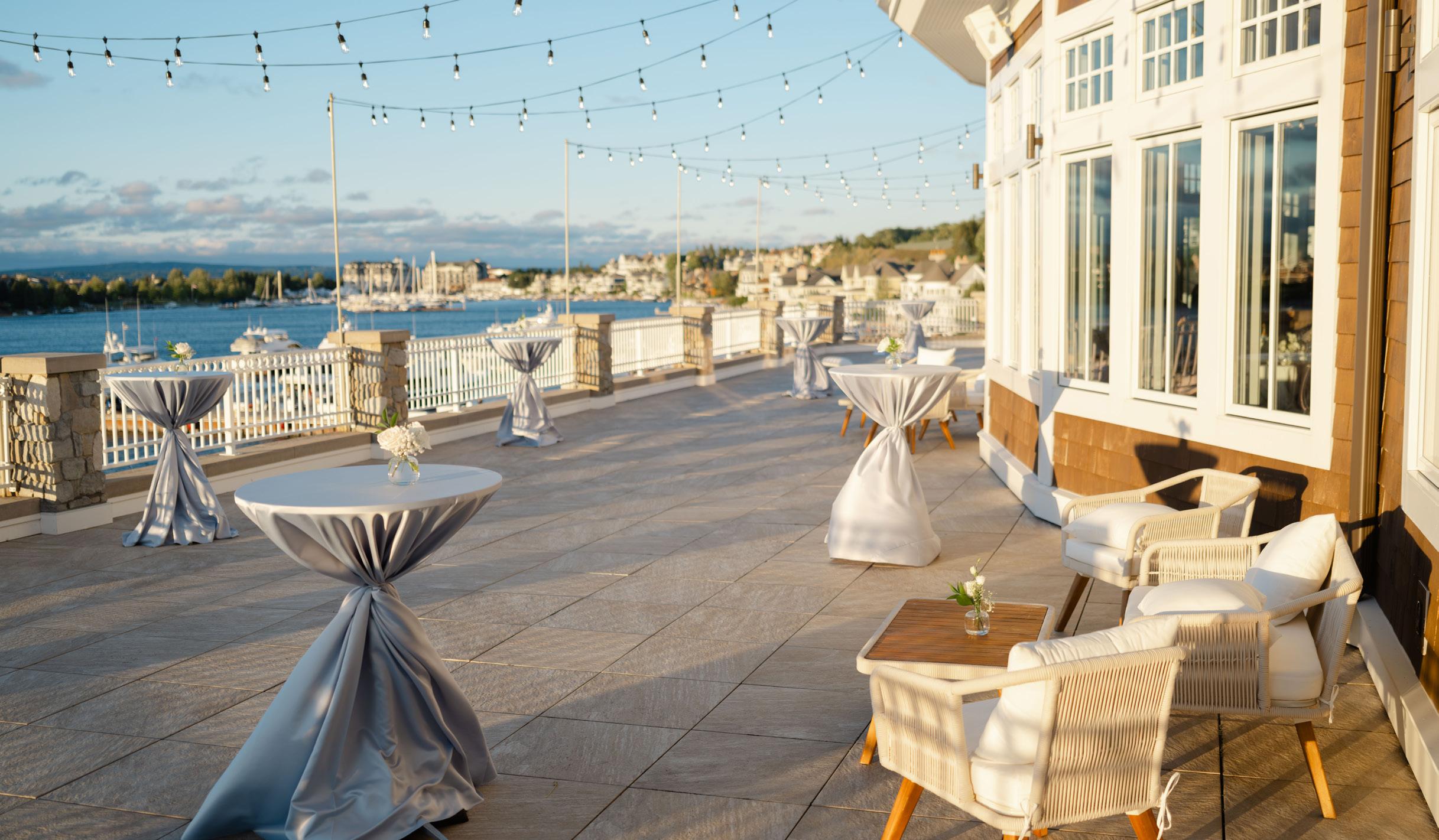 With walls trimmed in mahogany and a cozy fireplace, you can get down to business in the comfort of the Founder’s Room. This space offers a warm and professional atmosphere, perfect for business meetings or intimate social gatherings alike. The Founder's Terrace, located at the north end of the Founder's Room, offers a charming intimate setting with elevated view of Lake Michigan's Little Traverse Bay. Perfect for smaller gatherings, it's an ideal spot for hosting a business lunch, intimate dinner or cozy cocktail party.