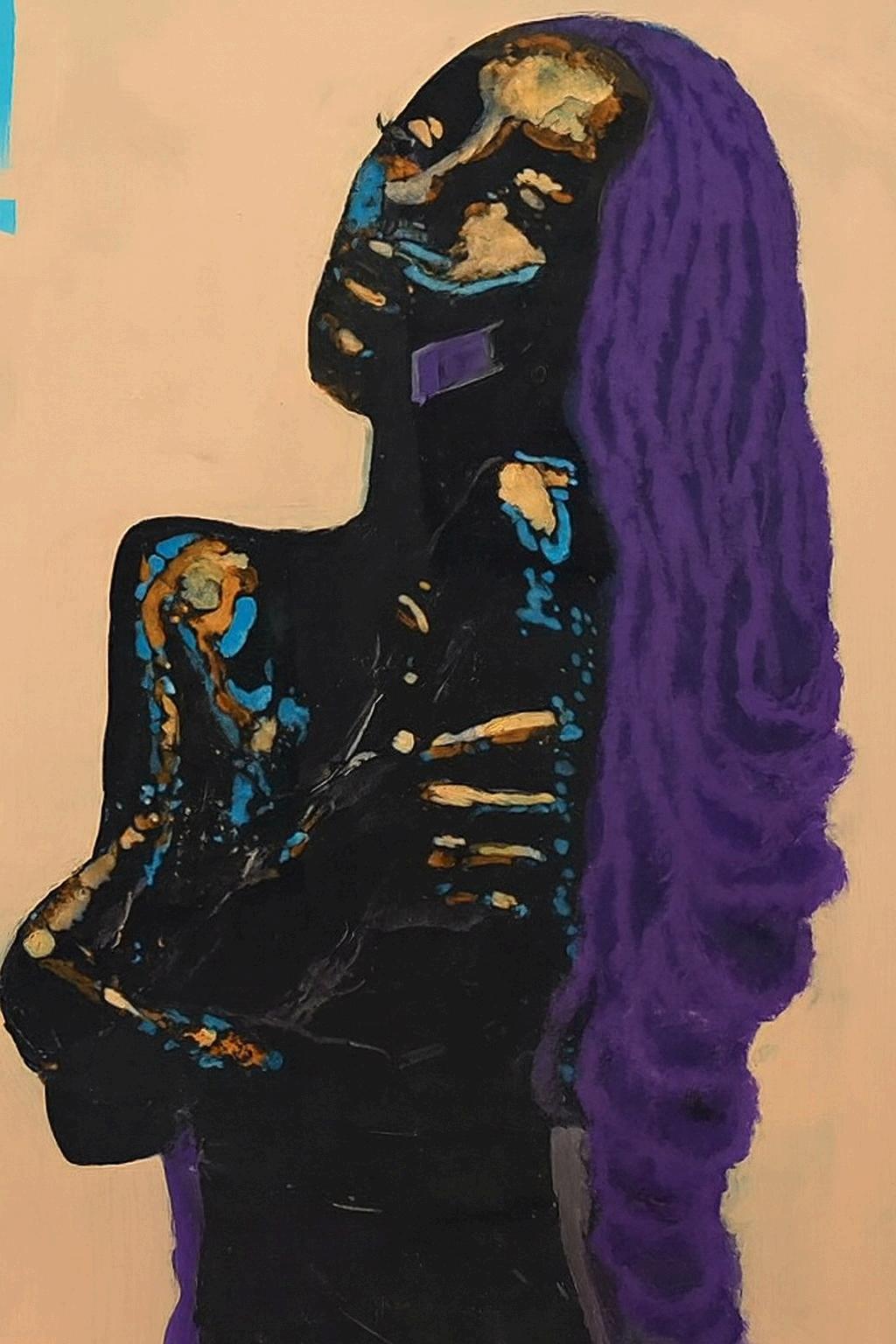 Fromthedarklayersofcoloremergesymbolsofancientforces –themountainspiritsandshadowsofforgotten myths Thepaintingfusesrawenergyandmysticism, speakingofapowerthatstillflowsbetweenthehuman worldandtheunseen