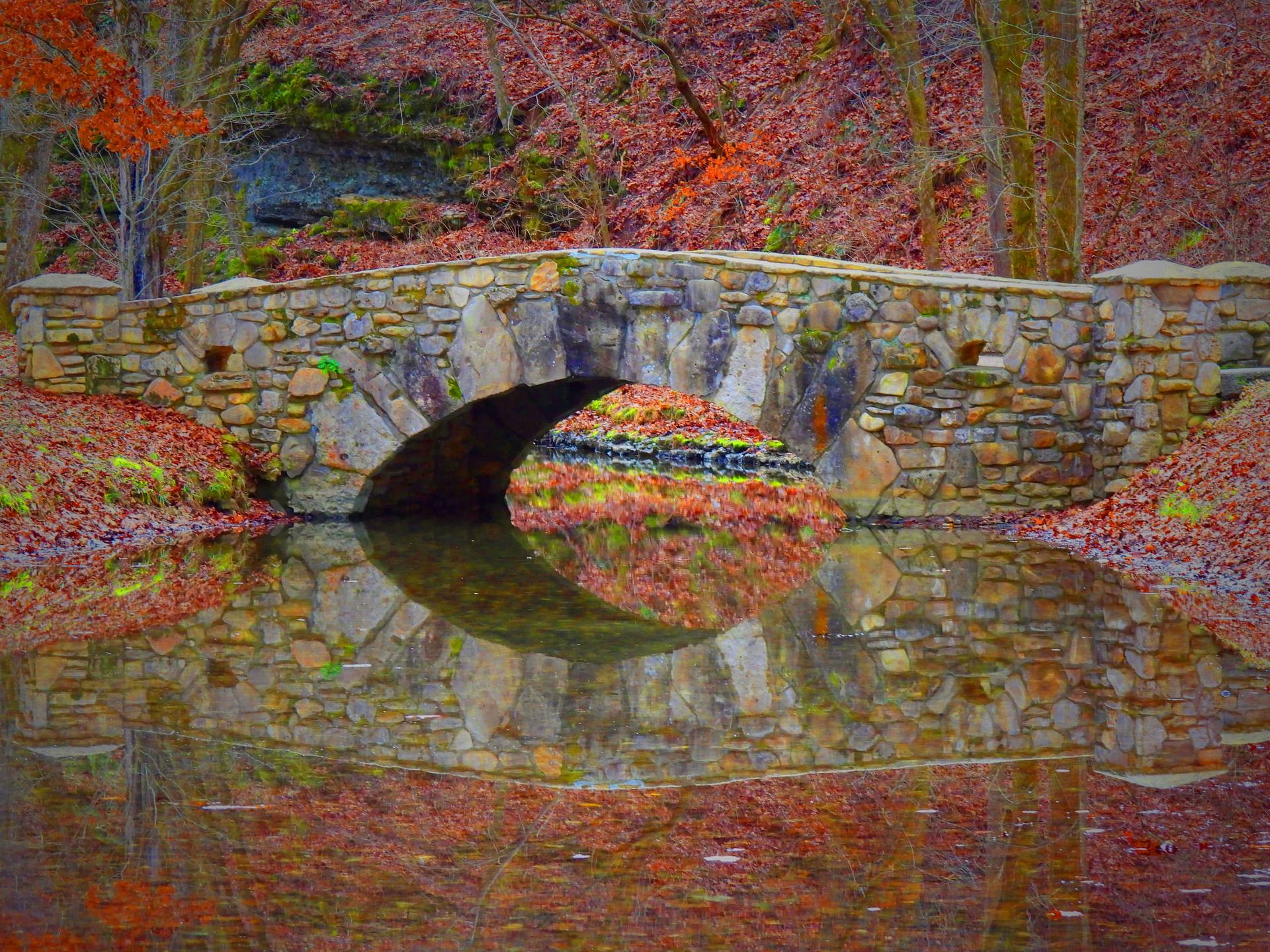 LocatedinDogwoodCanyonNatureParkinLampe, MO, thisreflectingpoolandstonebridgeprovidedfora perfectphotograph