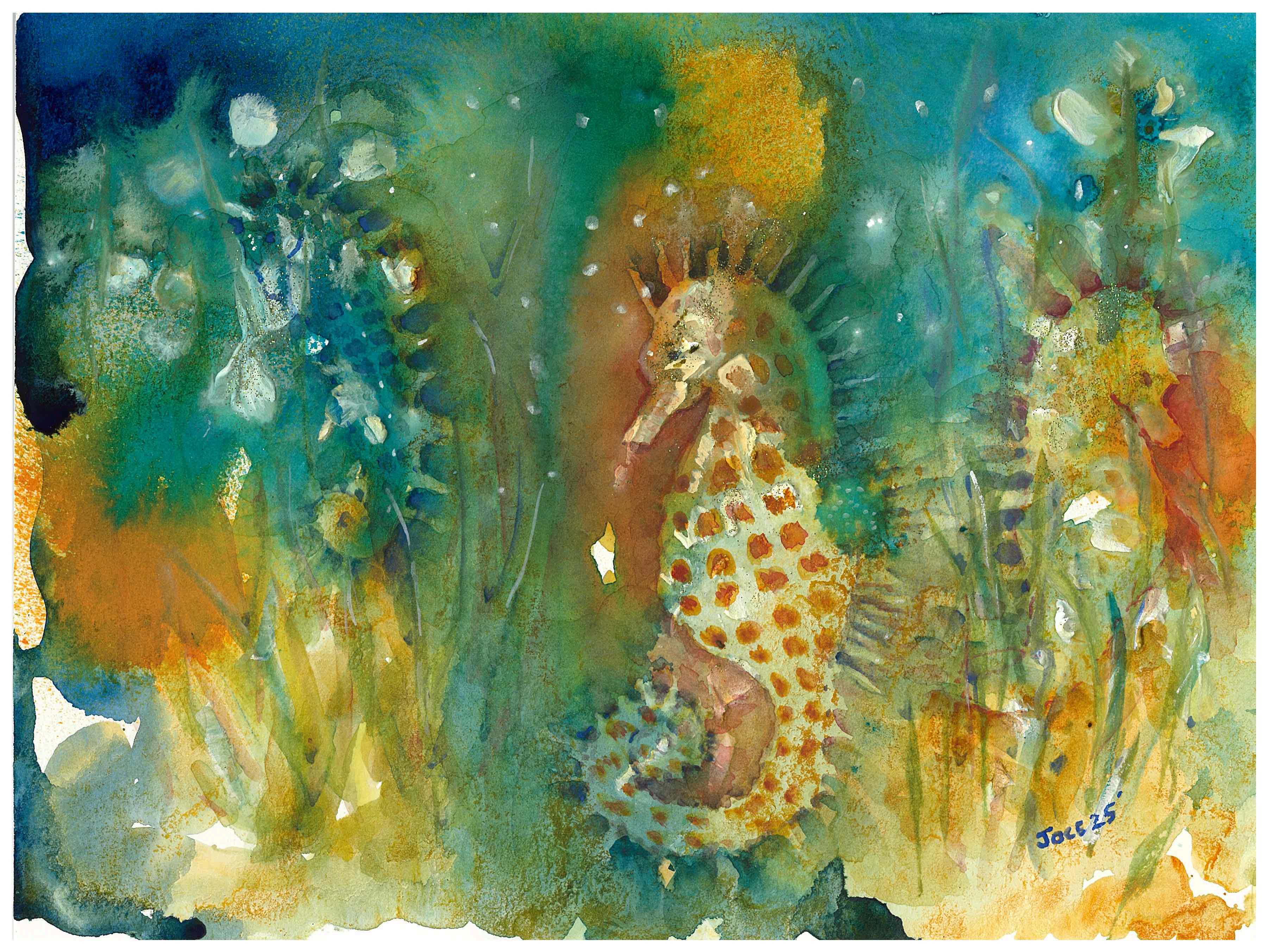 mixedmediawatercolor, 3seahorses AW127769196