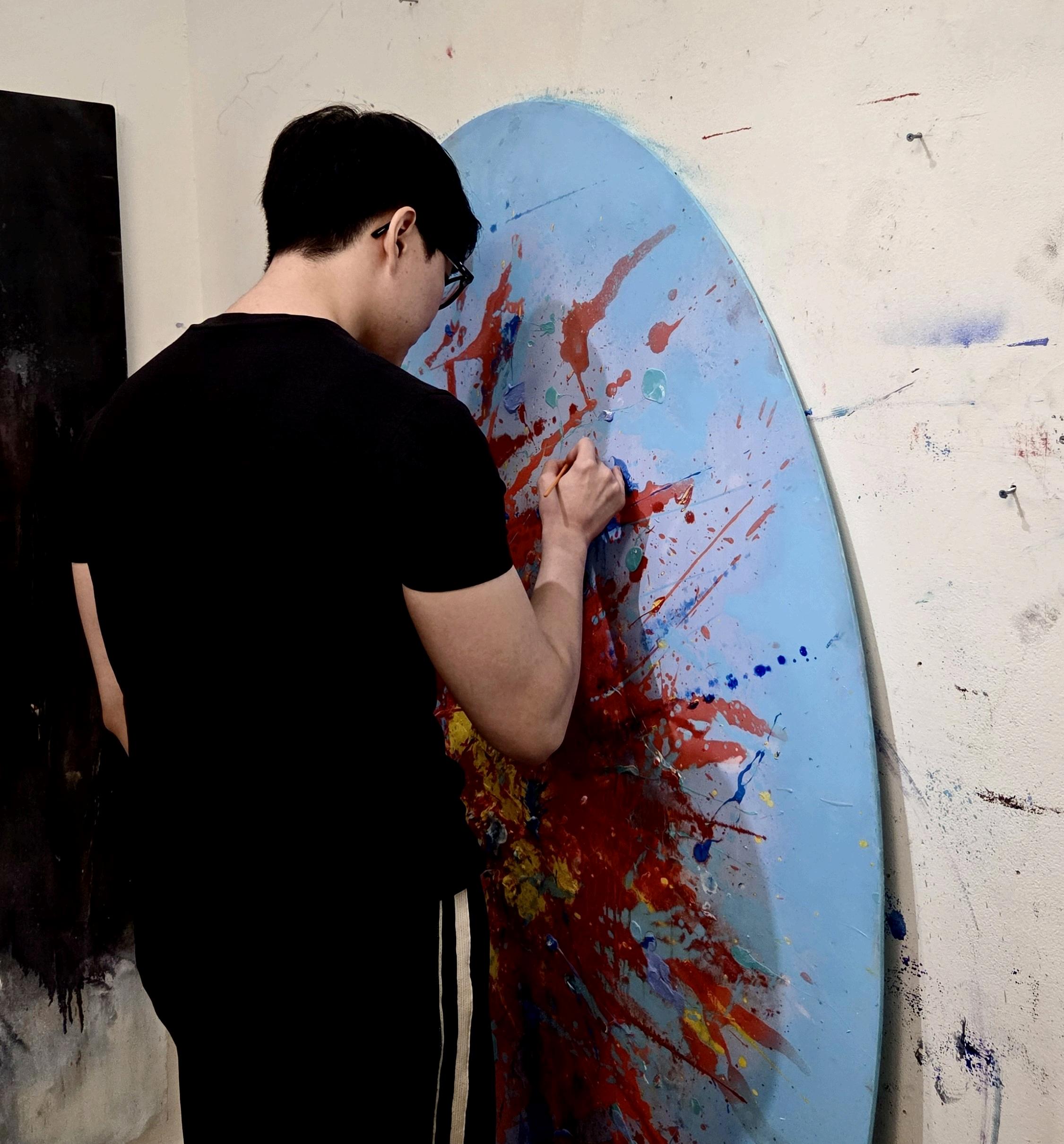 Acrylic, oilandlightmodelingpasteonstyrofoam Theseasonofspringevokesfeelingsofvibrancyandnew beginningsinanintensifiedform Springisaseasonthatsharestheendofwinterandthebeginningofsummer, anditisperceivedasaseasonofradicalmovementandvitality Iexpressthisintensemovement, exuberance, andvitality