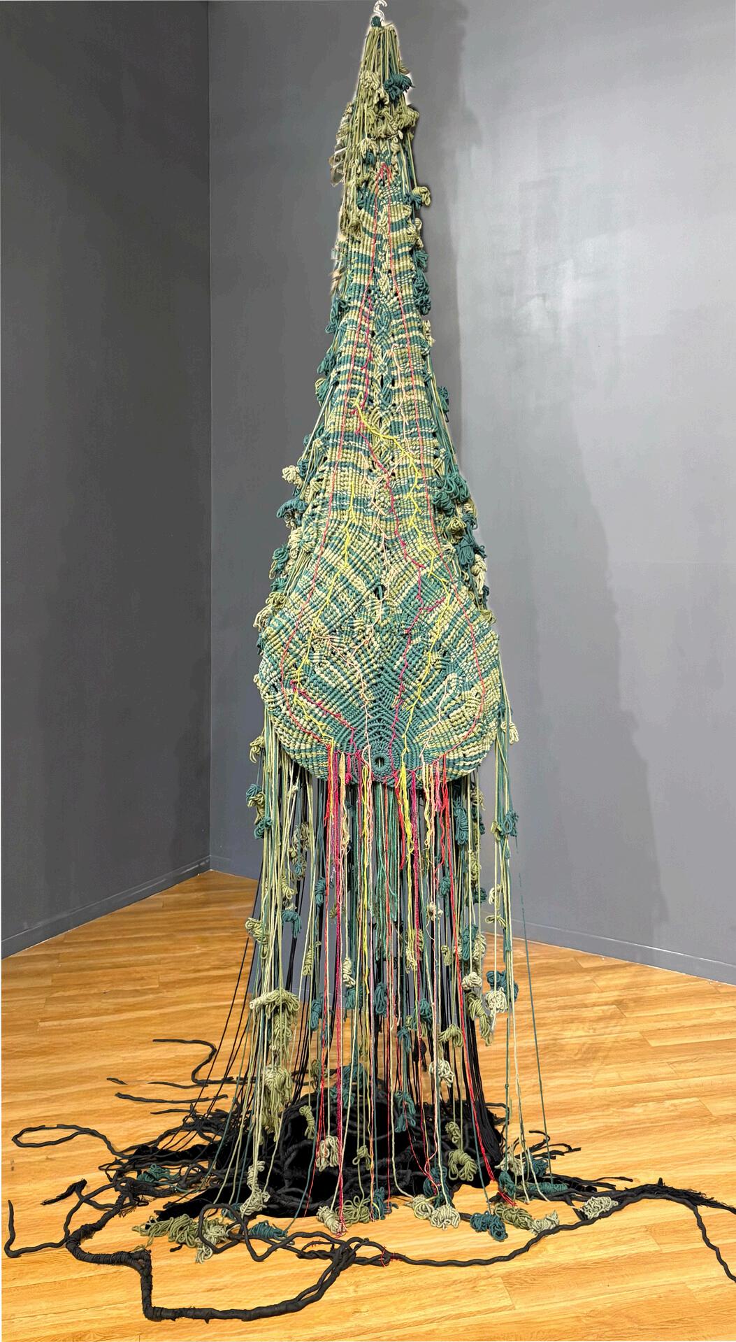 Thetapestry’smacramécypressrepresentswomenasemergingheroesfightingforequalityandfreedom, drawingonthecypress’ssymbolicmeaningasapowerfulmetaphorofliberty Whileacknowledgingmourningfor lostyouth, theworksimultaneouslycelebratesfemaleuprisingthroughcontrastingelementsthatemphasize transformation