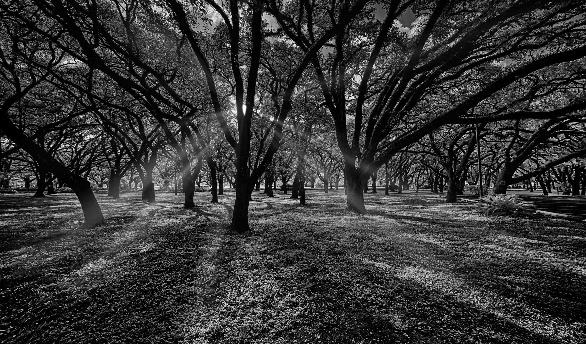 AluminumMetalPlatePhotography ABlackandWhiteInfraredphotographoftheRiceUniversityCampusin Houston, Texas Park WhenIstudiedhere, Iwastoldthatthereweremoretreesthanstudentsoncampus That wasalongtimeagoandalotofthingshavechanged, butnotthegrandRoyalLiveOaksofRice