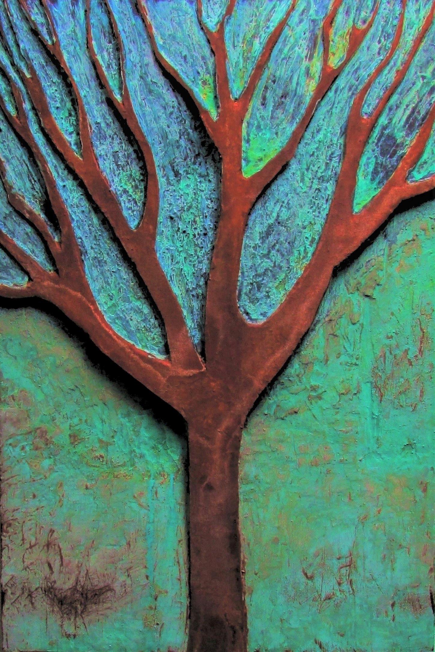 As a young man, Ed developed an interest in ancient civilizations which led to personal exploration of architectural ruins and reinforced his yearning for a lost past. Themes of decay and loss can be found in many of his pieces, and is reflected in his choice of medium, the evocative build up of patina that develops as a result of the oxidation of iron copper and bronze metal effects paint. When in his early 20s, Ed was enthralled by Mark Rothko’s large color field paintings exhibited in a retrospective at the Guggenheim Museum Lost in spiritual reverie while contemplating Rothko’s works, Ed experienced an ineffable sense of the sublime. This experience left a lasting impression on Ed and has had an enduring influence on his art. He tries in his own work to capture some of that sense of awe that Rothko’s work evokes.