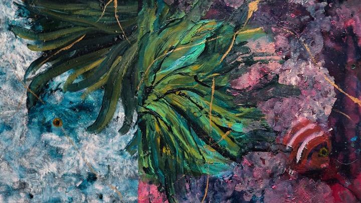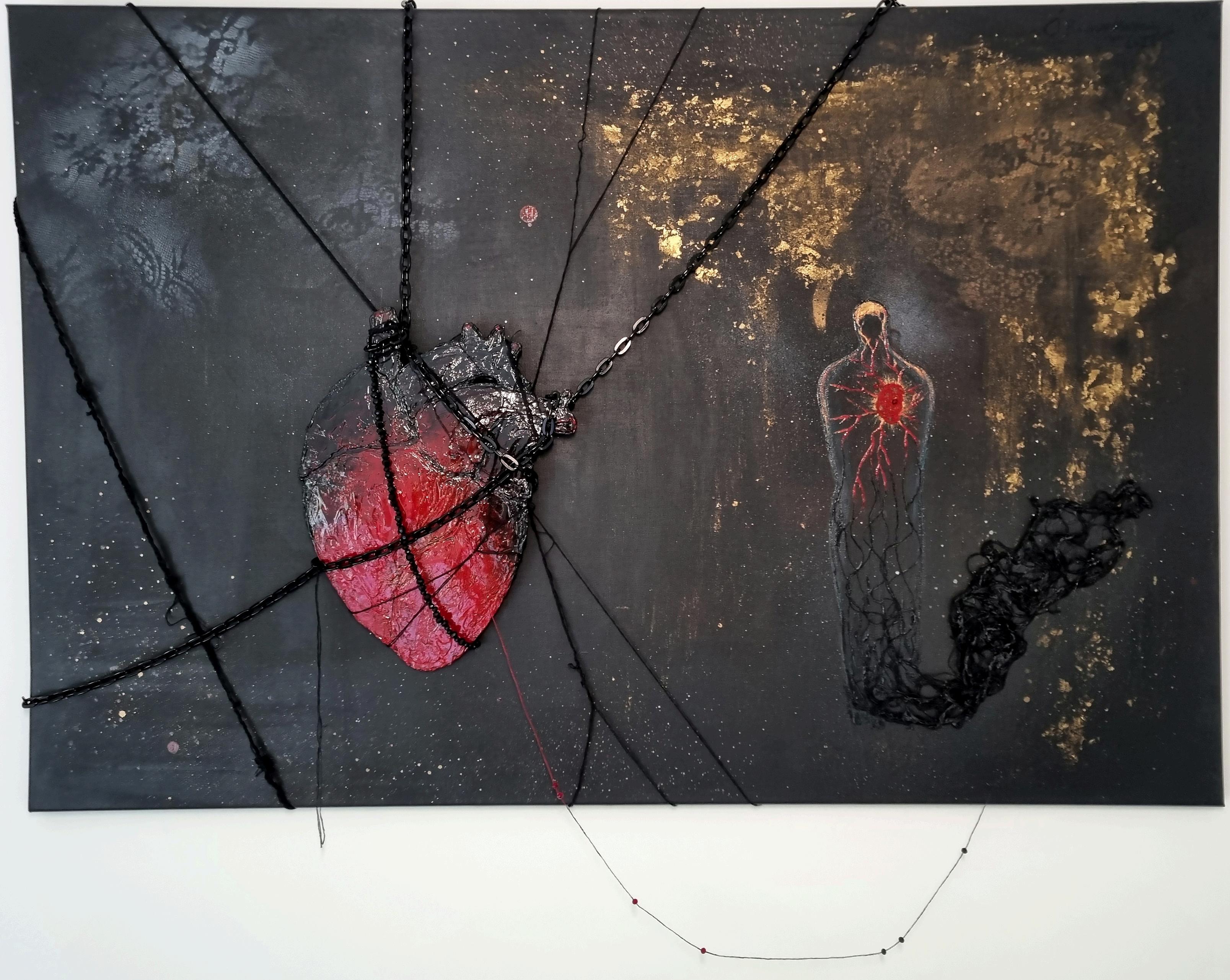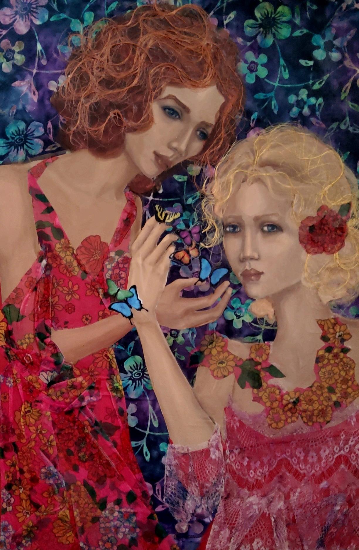 Painting, Acrylic, Mixed Media on Canvas, Fabric