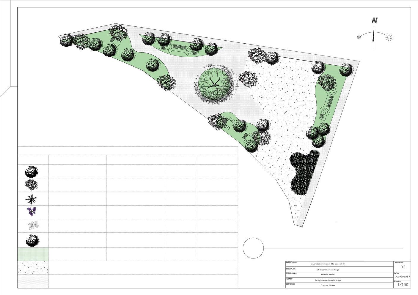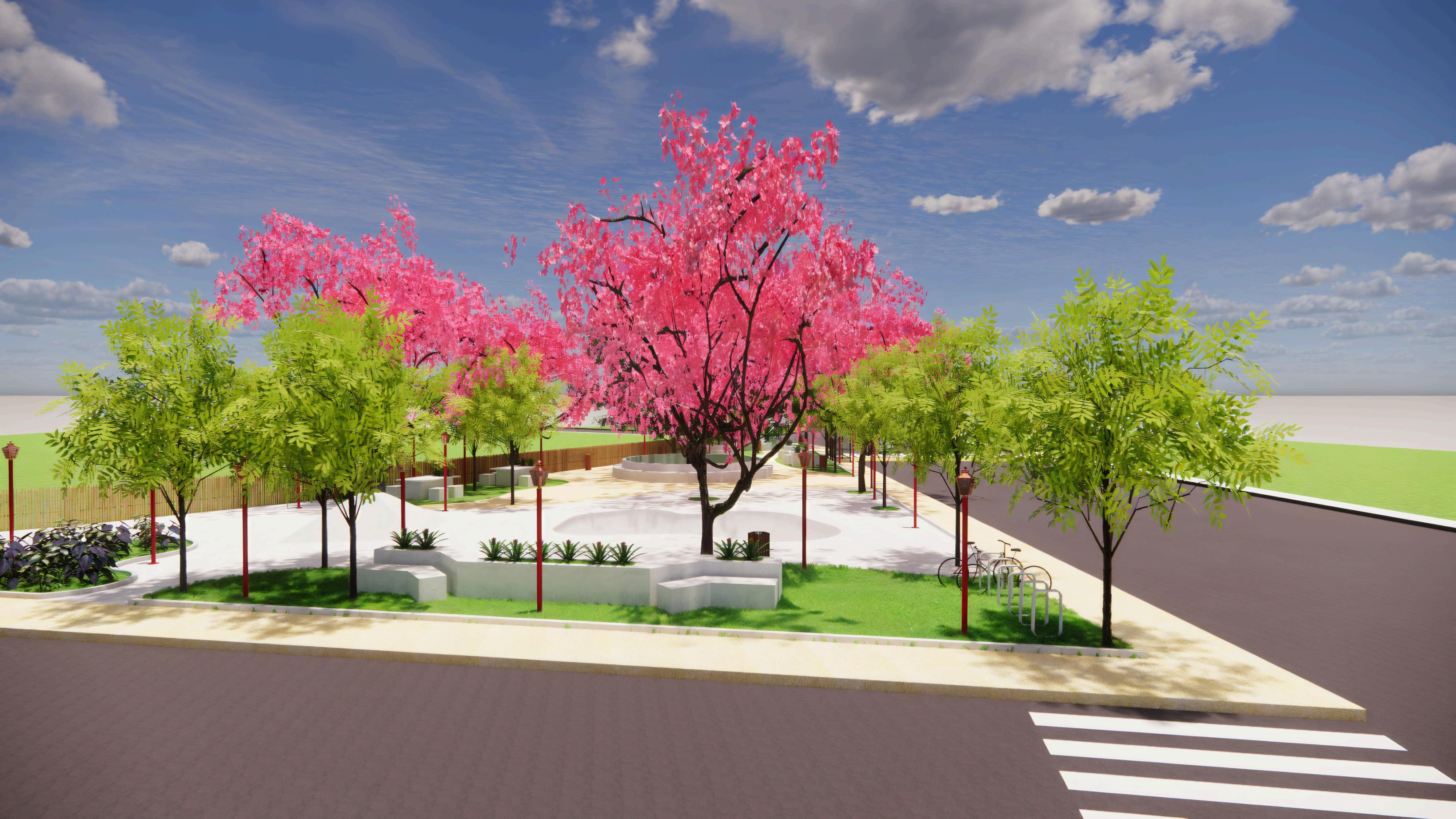 Além disso, as espécies escolhidas são nativas da região ou com boa adaptabilidade ao clima. As plantas localizadas mais ao sul da praça também são resistentes à água, por estarem em uma área alagável
