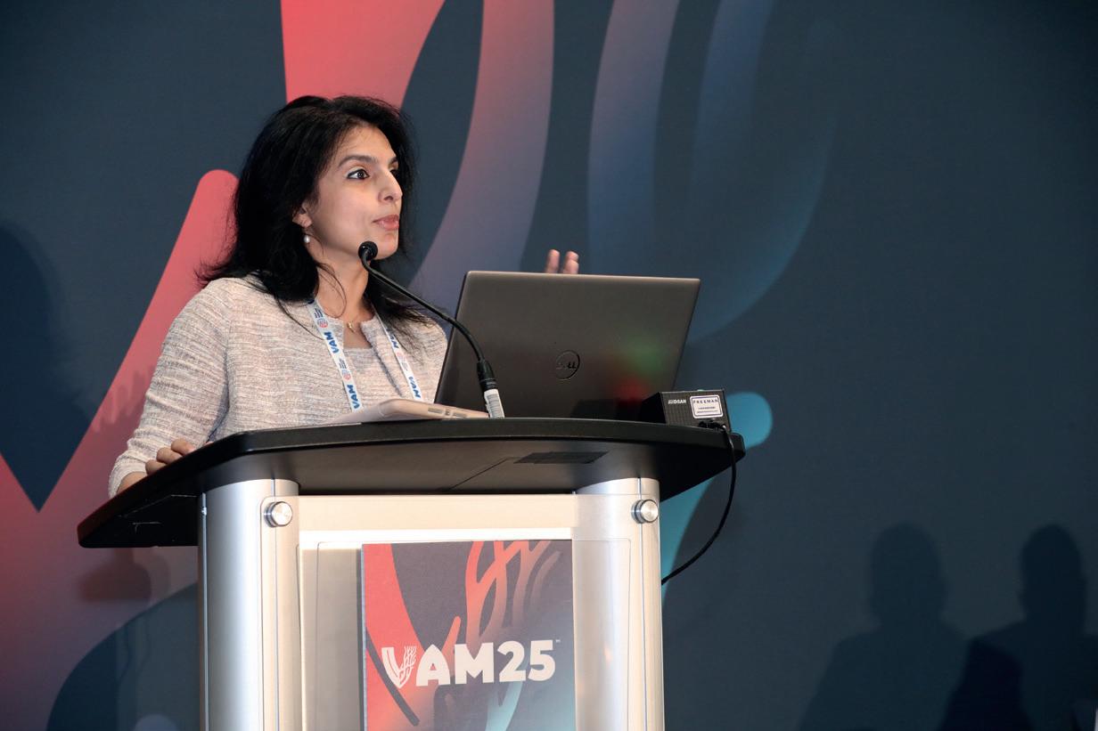Sherene Shalhub (Oregon Health and Science University, Portland, USA) set out a new biologically informed framework that “captures the diverse spectrum of arterial fragility and repair outcomes across inherited and acquired aortic disease” during the Roy Greenberg Distinguished Lecture on Innovation at VAM 2025.