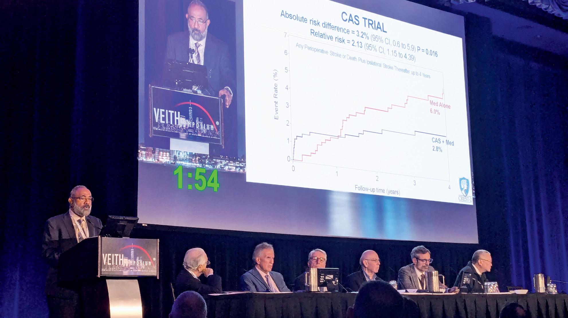 In the CAS trial, stroke and death rates out to four years were 6% in patients who were assigned medical management and 2.8% when CAS was added, Lal told VEITH 2025. “The absolute risk difference of 3.2% in favour of CAS was statistically significant,” he said.