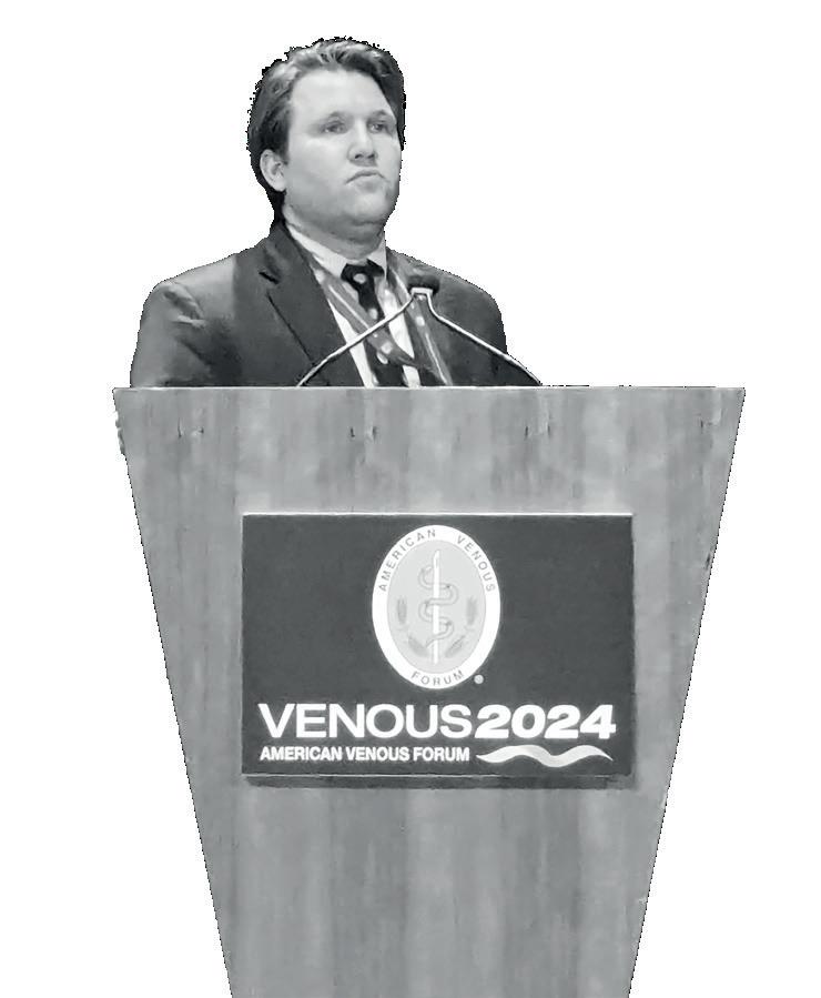 “IT IS MY HOPE THAT IN THE next 20 to 30 minutes, what I’m about to tell you will inspire a new generation of venous clinicians, researchers, and physicians to do better,” Pappas told the audience. Pappas began his presentation by speaking about his history as a vascular surgeon. He stated that, when he joined a fellowship at the New Jersey Medical School, he was told “we have this field in venous disease in which there is really not a lot of basic science research. It’s the forgotten stepchild of vascular disease and we really want to elevate the quality of the work that’s being done there.