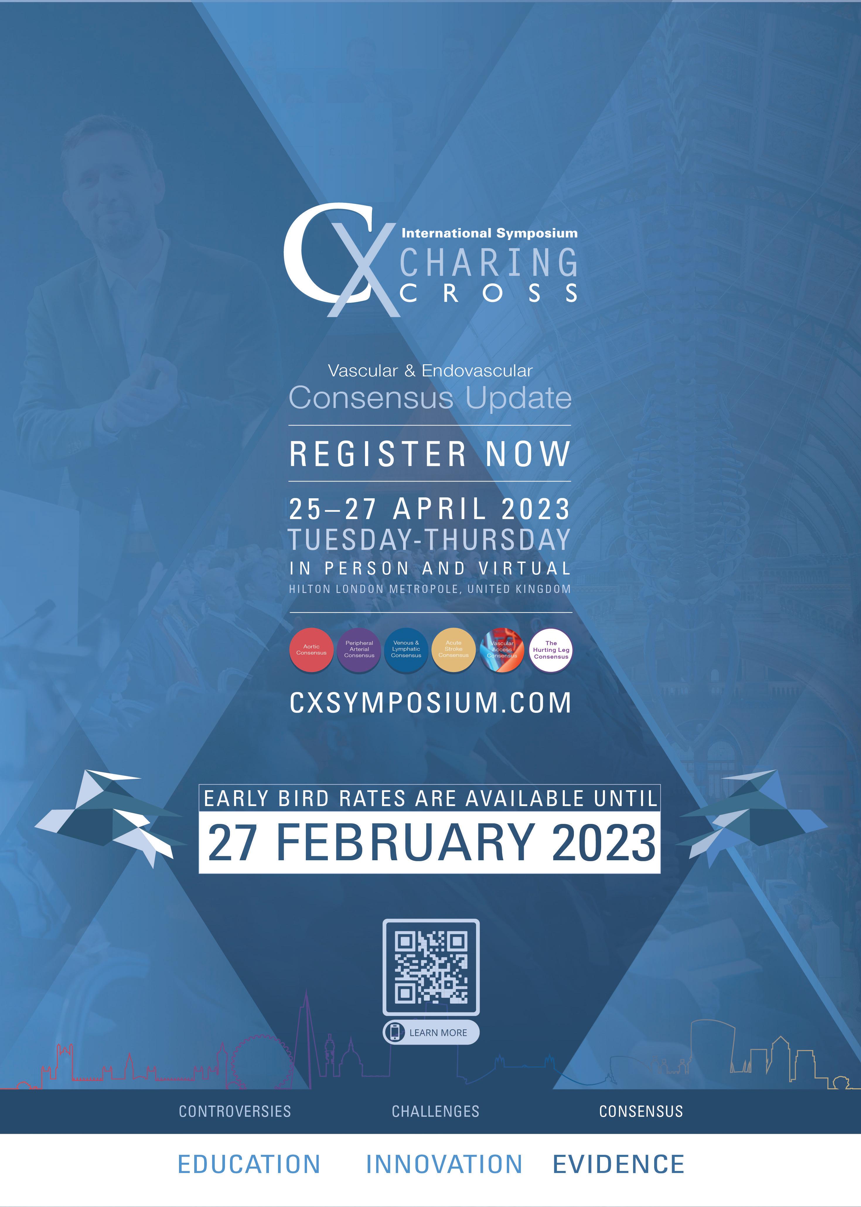 CX continues its three-year cycle of raising vascular and endovascular controversies in order to challenge the available evidence and to be able to reach a consensus after discussion with a global audience. Register for CX 2023 at www.cxsymposium.com to be one of the first to hear the latest data on revascularisation strategies in CLTI and be part of the data-driven discussion.