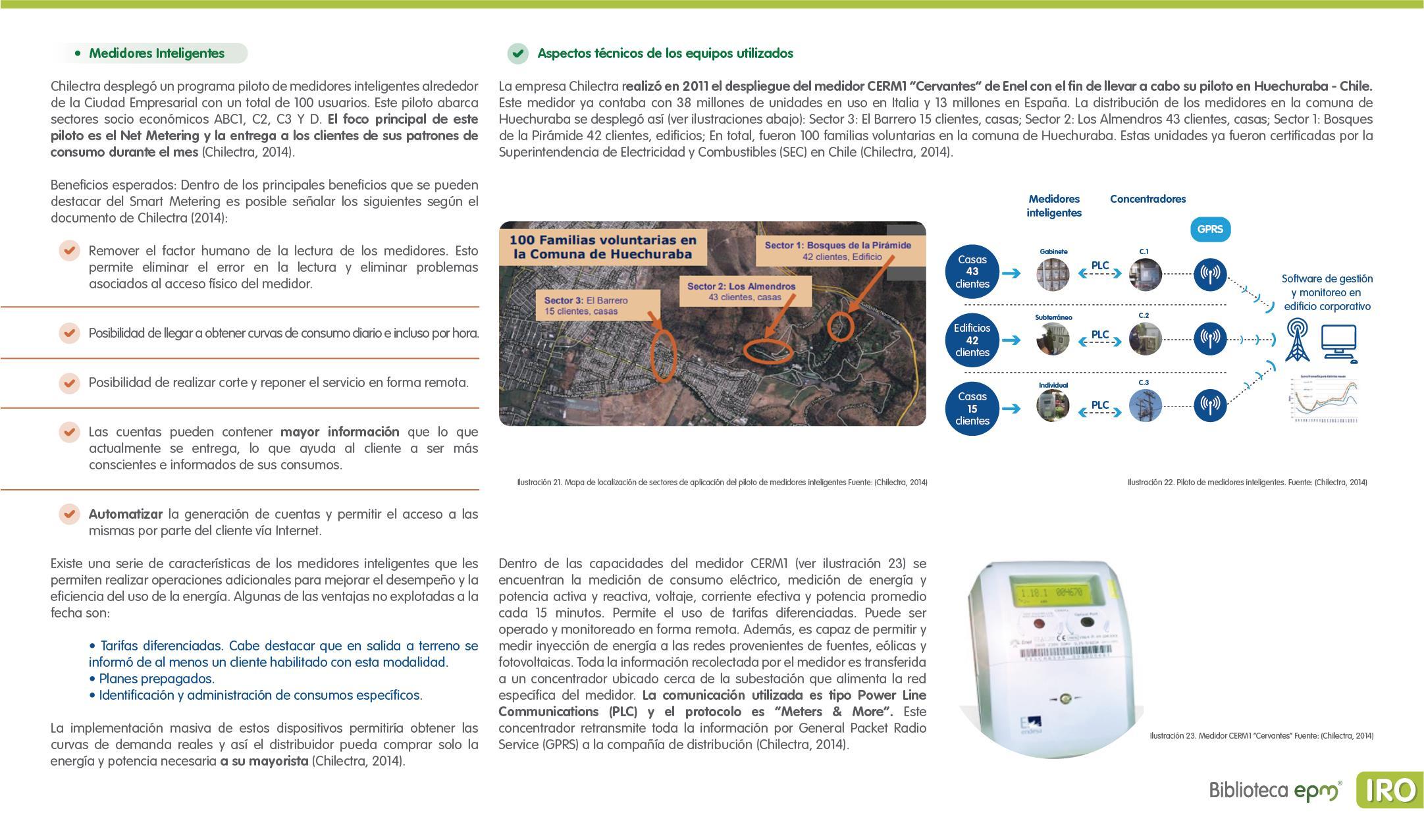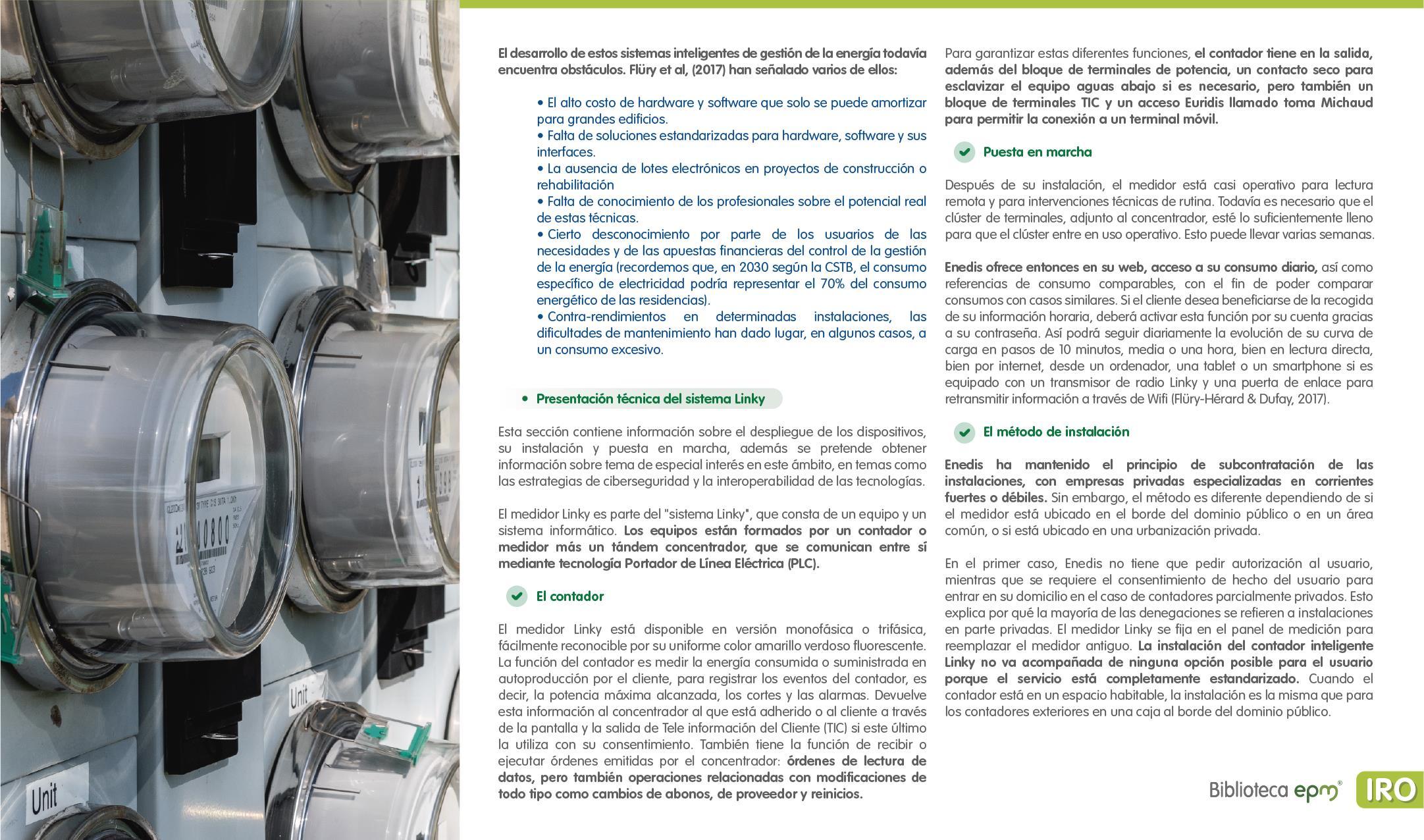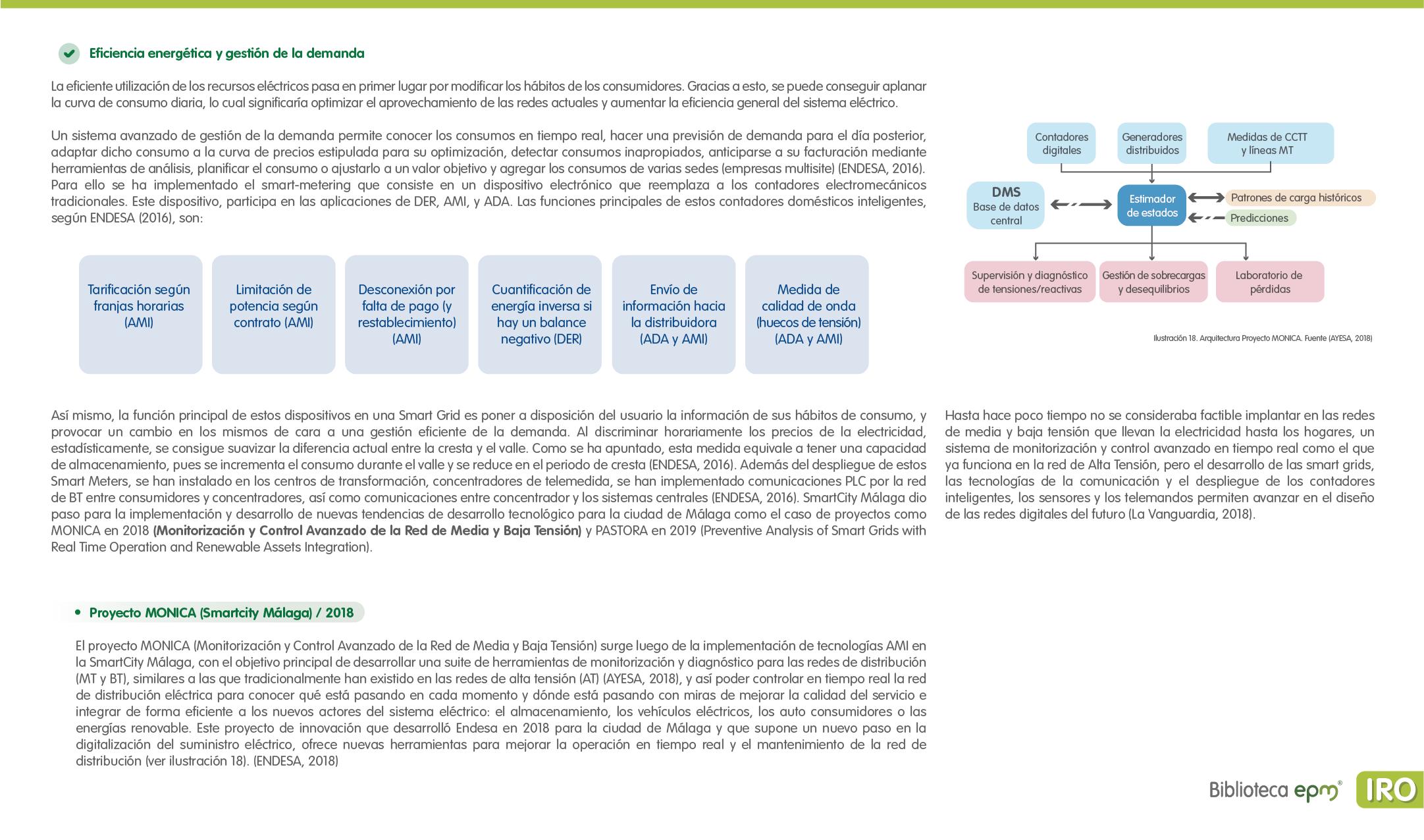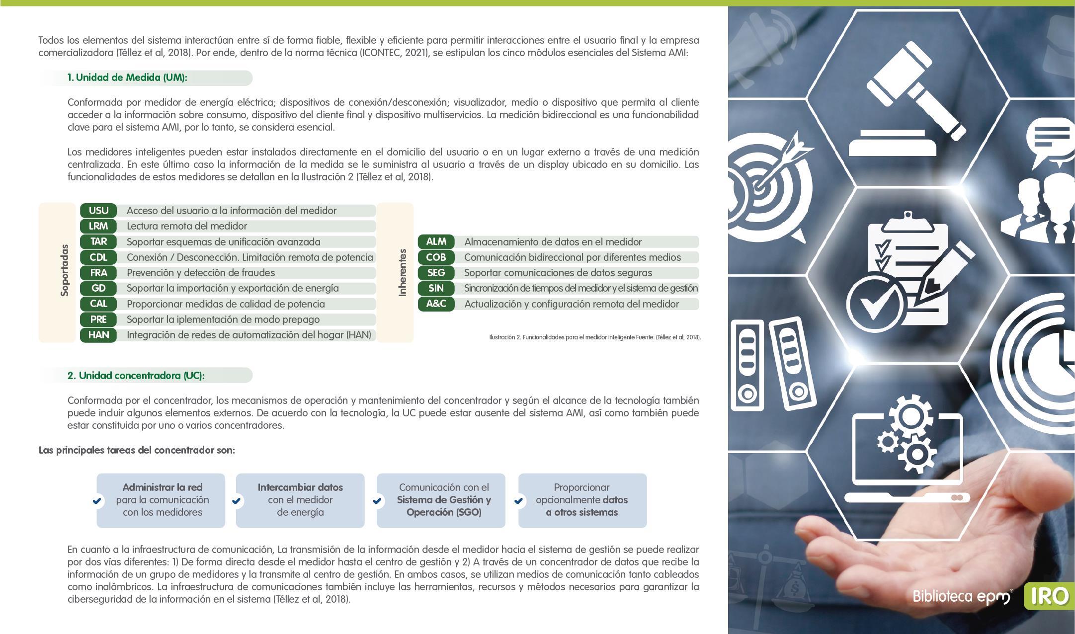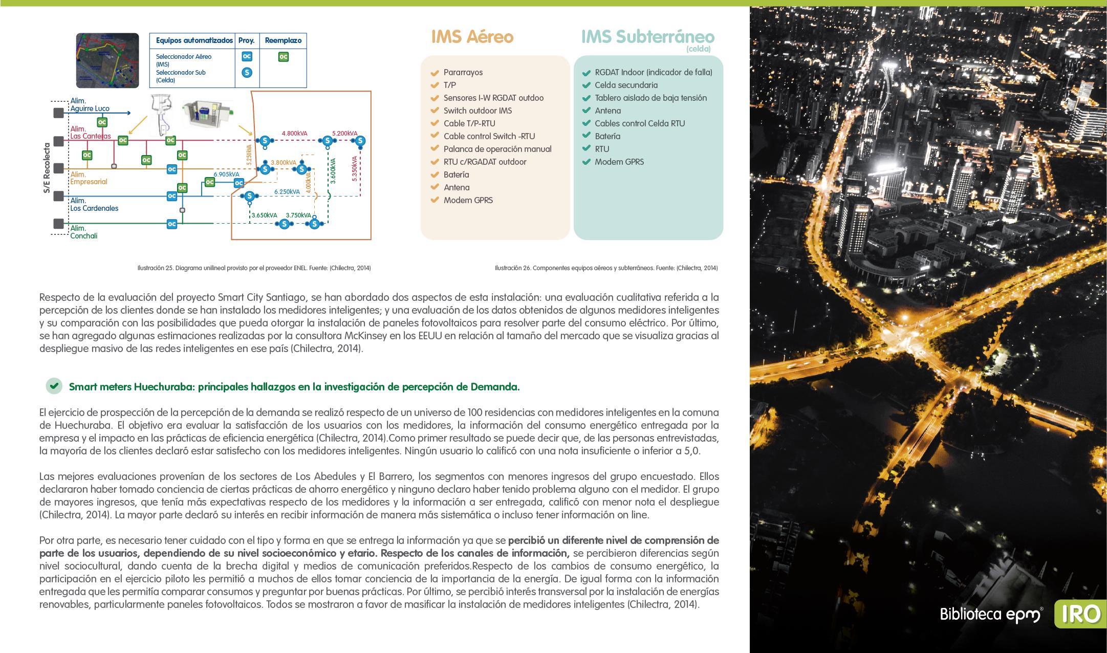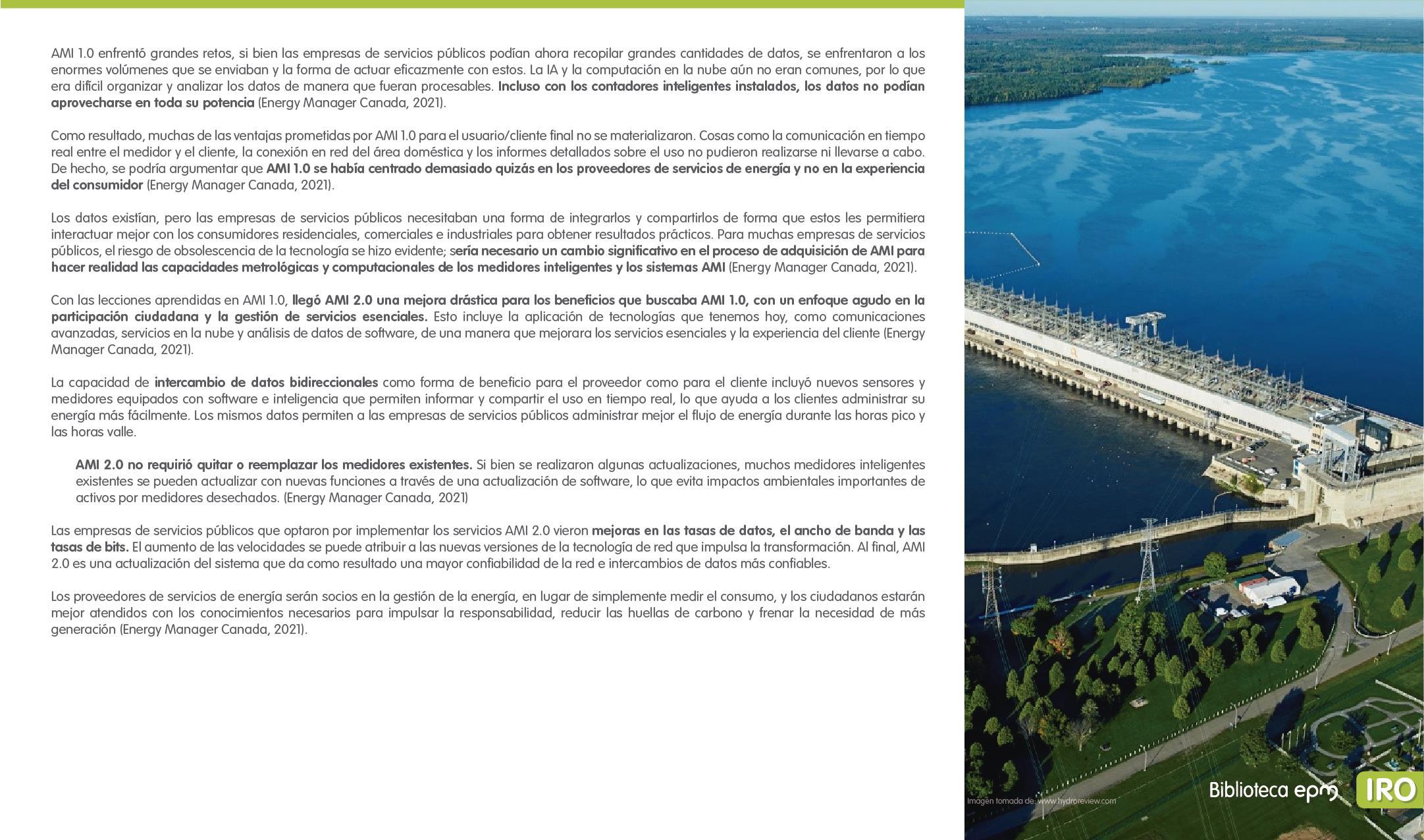 El informe está compuesto por 6 capítulos: Ciudades inteligentes y el rol de la Infraestructura de Medición Avanzada (AMI); AMI en Colombia, normatividad y proyectos; Cómo se implementa AMI en el mundo. Casos de estudio; Mercado de AMI; Ciberseguridad y otros aspectos técnicos de AMI; Implicaciones, riesgos y oportunidades para las ciudades inteligentes enfocados en AMI. Dentro de cada capítulo se tienen inicialmente algunas ideas clave, extraídas de los papers, artículos y reportes citados, para luego presentar en detalle sus resultados, conclusiones de las investigaciones y puntos de vista de sus autores.