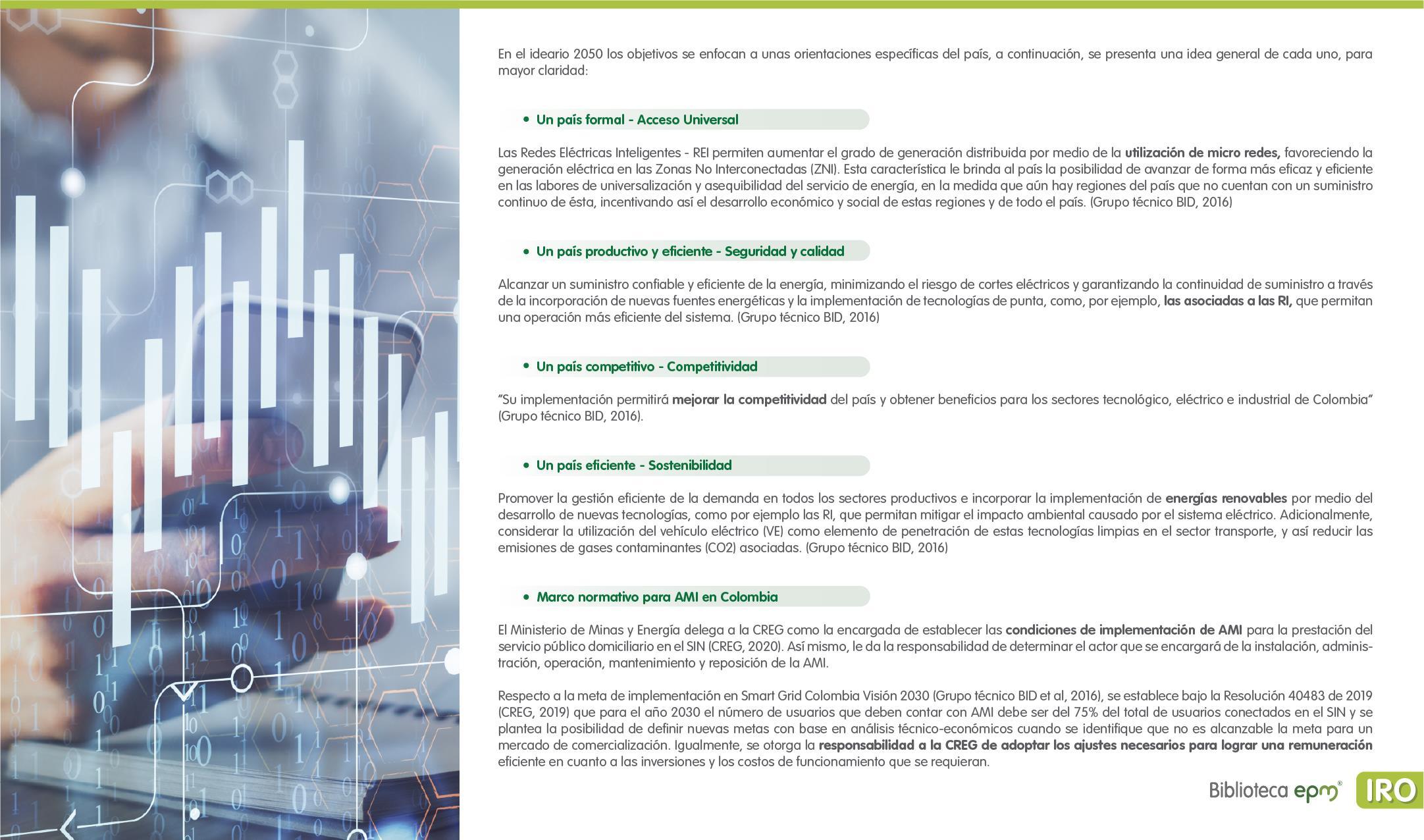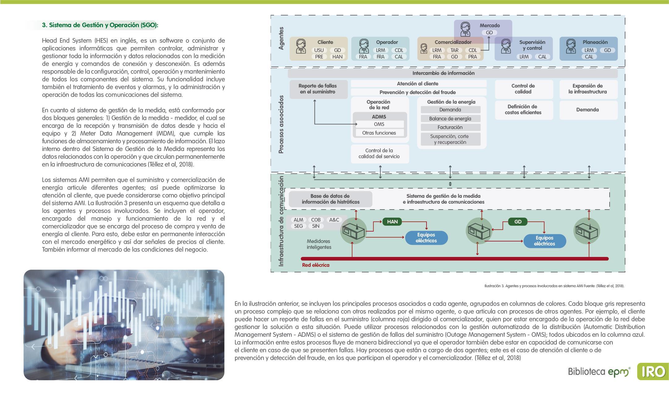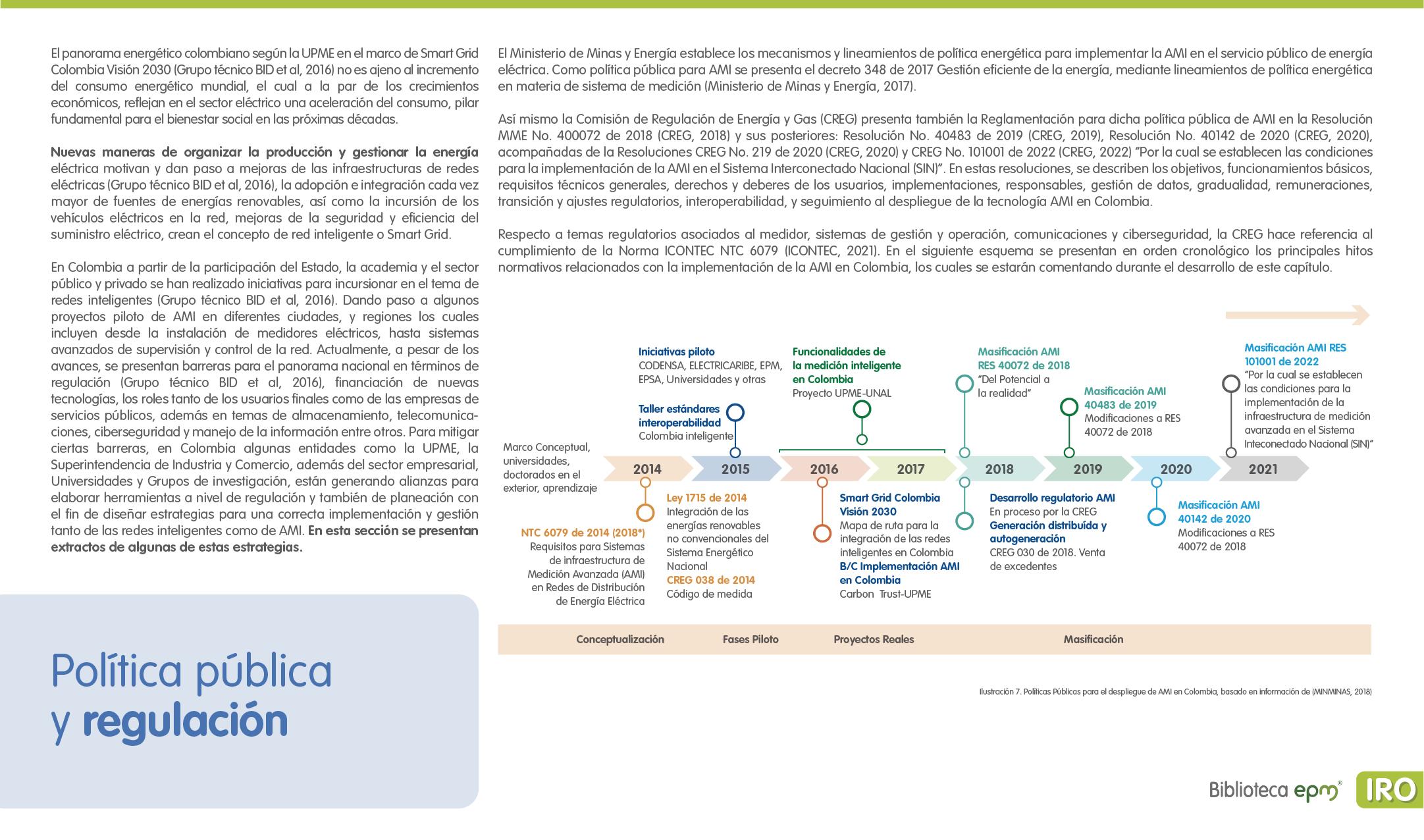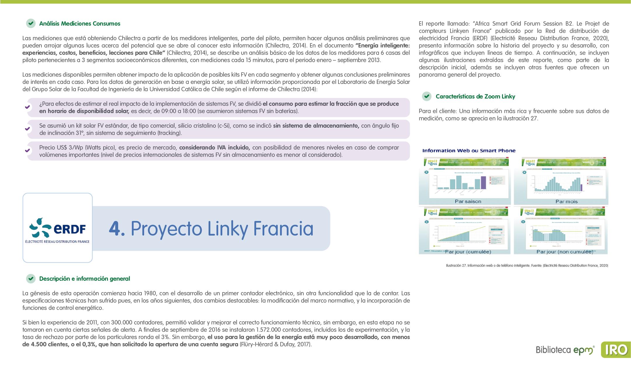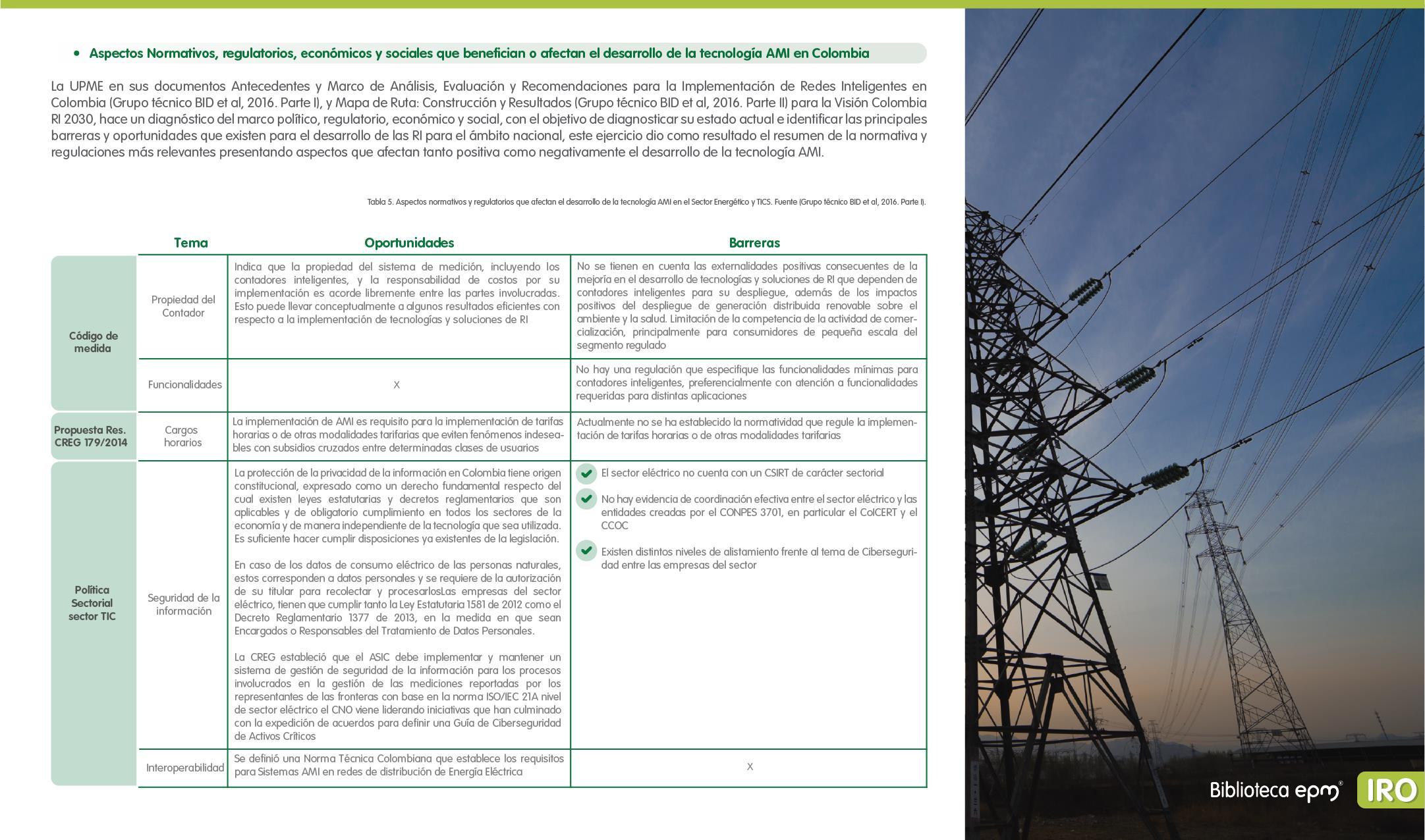 El informe está compuesto por 6 capítulos: Ciudades inteligentes y el rol de la Infraestructura de Medición Avanzada (AMI); AMI en Colombia, normatividad y proyectos; Cómo se implementa AMI en el mundo. Casos de estudio; Mercado de AMI; Ciberseguridad y otros aspectos técnicos de AMI; Implicaciones, riesgos y oportunidades para las ciudades inteligentes enfocados en AMI. Dentro de cada capítulo se tienen inicialmente algunas ideas clave, extraídas de los papers, artículos y reportes citados, para luego presentar en detalle sus resultados, conclusiones de las investigaciones y puntos de vista de sus autores.