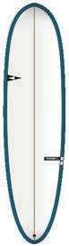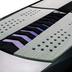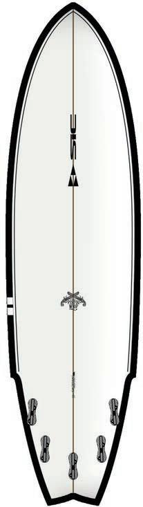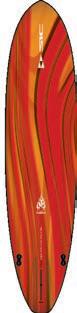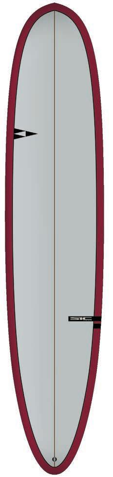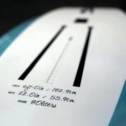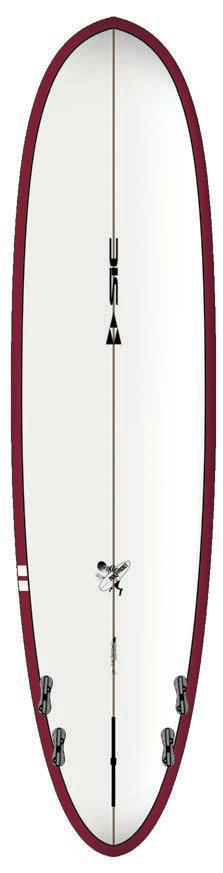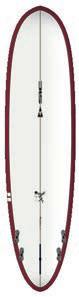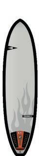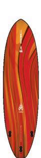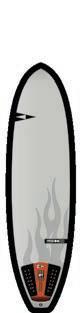 It features a flat section bottom and tail wedge for excellent initial stability and effortless porpoising before pop-up. Tail volume adds balance, while a thinned-out nose reduces swing weight for quick, responsive maneuvering. The rail apex, placed at the deck, improves side-to-side stability and helps prevent rail catching in fast turns, giving the board a fluid, controlled feel when carving in swell and linking bumps.