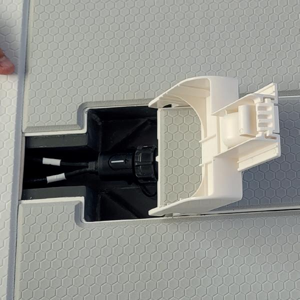 Parfaitement verrouiller le connecteur jusqu’au «clack» de verrouillage afin d’assurer son étanchéité. Dans le cas contraire, il n’est pas étanche ! Verrouiller le clapet mobile pour que la batterie ne puisse pas sortir de son logement.