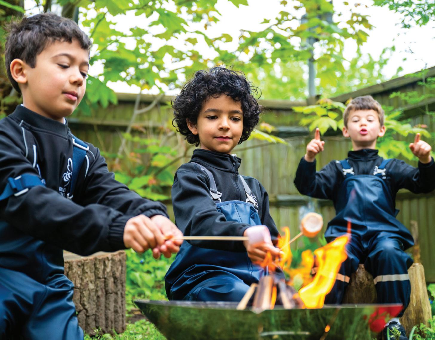 Forest School takes place every week with our specialist Forest School teachers. This happens onsite in our fully kitted-out Forest School area. Children learn various skills, including fire safety, knot-making and woodwork, which support their rounded learning.