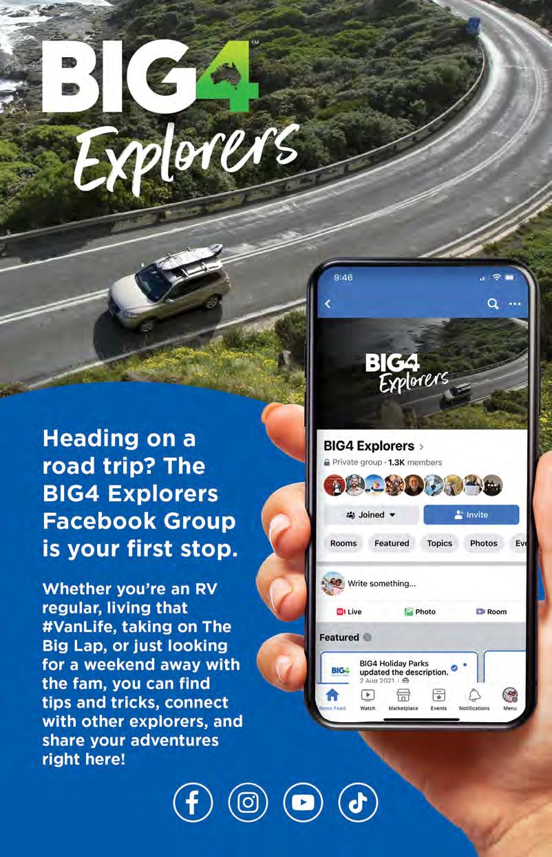 Information in the 2021 BIG4 Holiday Guide is subject to change without notice. BIG4 Holiday Parks of Australia Pty Ltd endeavours to ensure the information is true and correct at the time of publication. No responsibility is taken for the accuracy or omission of information. All BIG4 Holiday Parks are independently owned and operated, therefore terms and conditions may vary from park to park. BIG4 Holiday Parks of Australia Pty Ltd takes no responsibility for variances or changes to parks’ terms and conditions.
