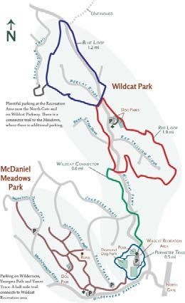 Wildcat has a network of paved trails for walking your dog. There are two Dog Parks at Wildcat on the Red Loop Trail near the Pavilion parking area on Wilderness Parkway. The big dog dog park is on your right and the little dog dog park is on your left.