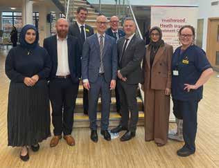 Ed Landon, Hospital Operations Director for Heartlands Hospital,Minister of State at the Department of Health and Social Care, Stephen Kinnock MP, Stuart Lackenby, Executive Director Adult Social Care and Health Birmingham City Council, Dr Subeena Suleman, Chair of BSol ICS’s GP Partnership Board and BSol ICB’s Primary Care Medical Services Partner Member and Joanne Heartland, Associate Director of Nursing (Clinical Delivery Group 1A), Heartlands Hospital. Second row: Richard Kirby, Chief Executive, Birmingham Community Healthcare NHS Foundation Trust and David Melbourne, Chief Executive, NHS Birmingham and Solihull and NHS Black Country.