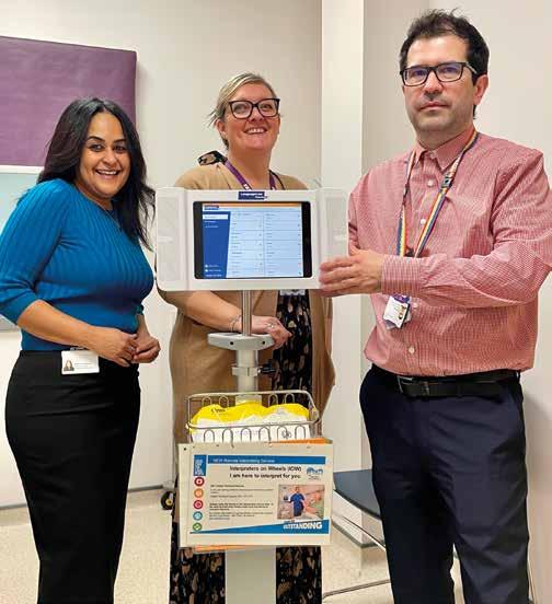 Interpreter Andrea Goodman with Assistant Chief Nurse Laura Stent and Linguistic And Interpretation Service Co-ordinator Alex Papp.