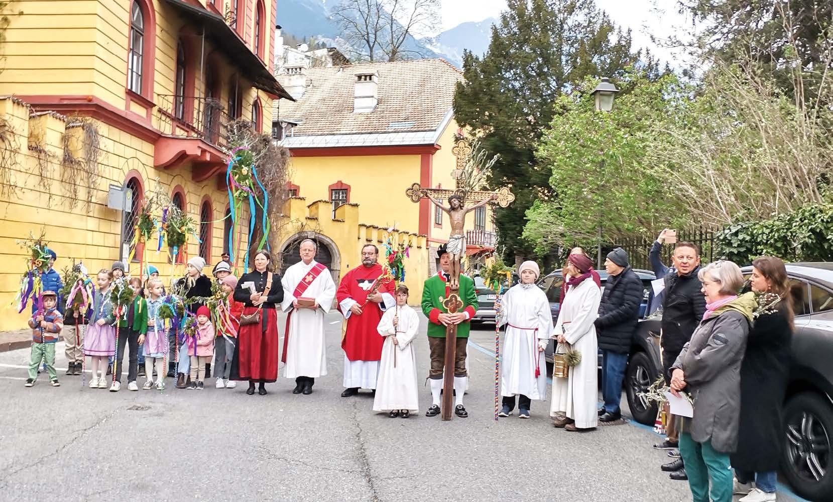 9:45 Uhr Palmweihe vor der Alten Kirche, Palmprozession zur Pfarrkirche und Gottesdienst in der Pfarrkirche musik. Gestaltung „Stadtmusikkapelle Hötting“
