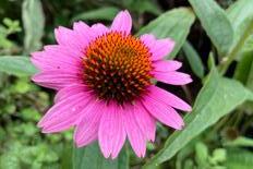 In unserem Kräuterbeet blüht die Echinacea purpurea