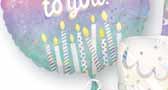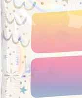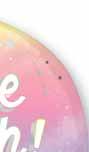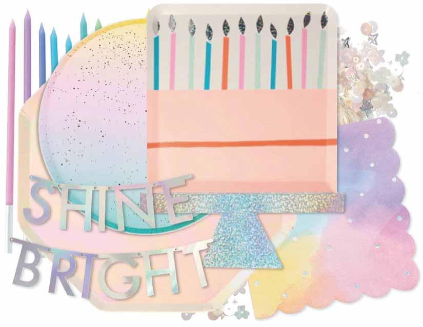 Echoing the trend of transformative surfaces and pearlized finishes, your birthday will shine bright on this holographic film and pastel color palette.