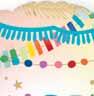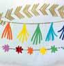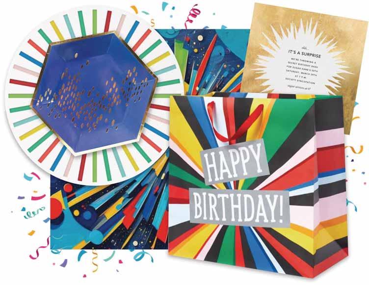 A modern, hip, birthday collection mixing a variety of tassels and soft ombres in a fun primary color palette.