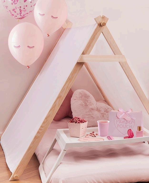 Set up relaxation stations with our white pamper tent and be sure to tie our helium balloon to the birthday girl’s tent. The little ones will have been counting down since their eye mask invitations arrived!