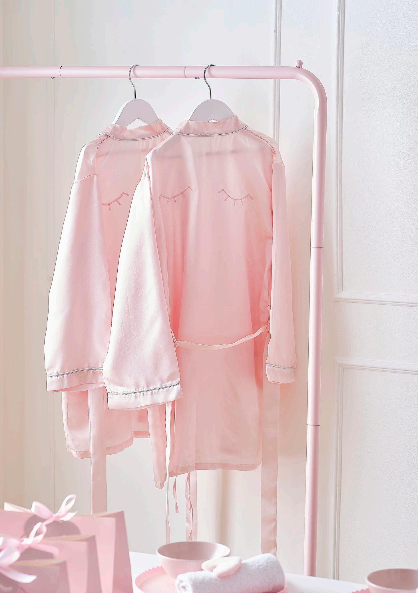 Our new gowns also feature embroidered lettering on the lapel to make them extra special. Pair them with our new slippers, cosmetic bag and eye mask to make getting ready for the big day a breeze