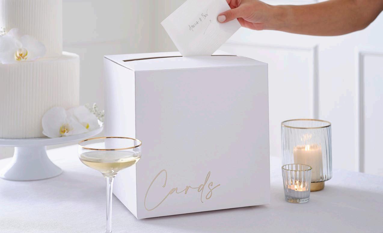 Post your well wishes for the happy couple into this textured card box with gold foiling and add some tealight holders to the table to decorate