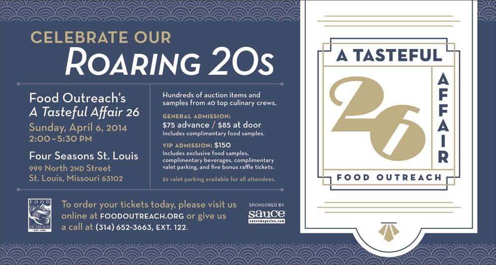 To place advertisements in Sauce Magazine contact the advertising department at 314.772.8004 or sales@ saucemagazine.com.