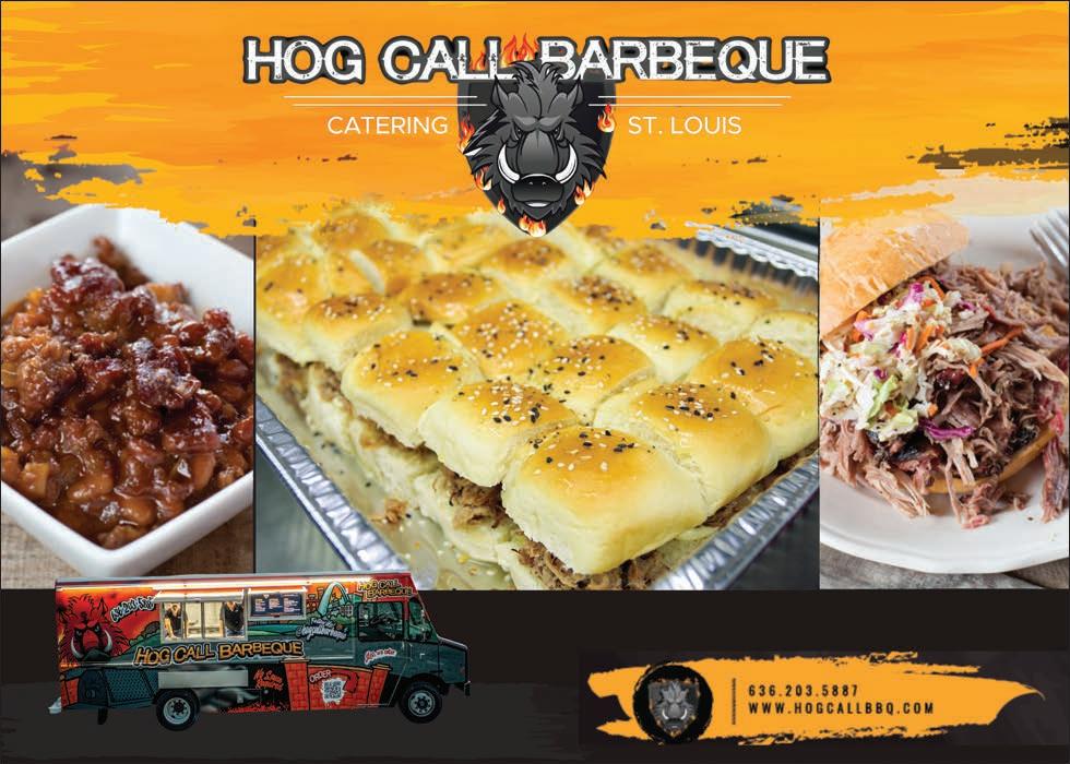 Hog Call Barbeque's menu is full of your favorite barbecue entrées, appetizers, and sides. They offer unique combinations of classic comfort food and bold flavor, all with just the right amount of smoke, a perfectly honed masterpiece created over 20 years of cooking. Entrées include familiar favorites like smoked brisket sandwiches as well as fun choices like bacon-wrapped hot dogs and pulled pork nachos. Try delicious side like razorback smoked beans, sour cream baked mashed potatoes, and smoked mac and cheese. Hog Call is available to cater any event, large or small. Find their food truck serving at events all over the St. Louis area.