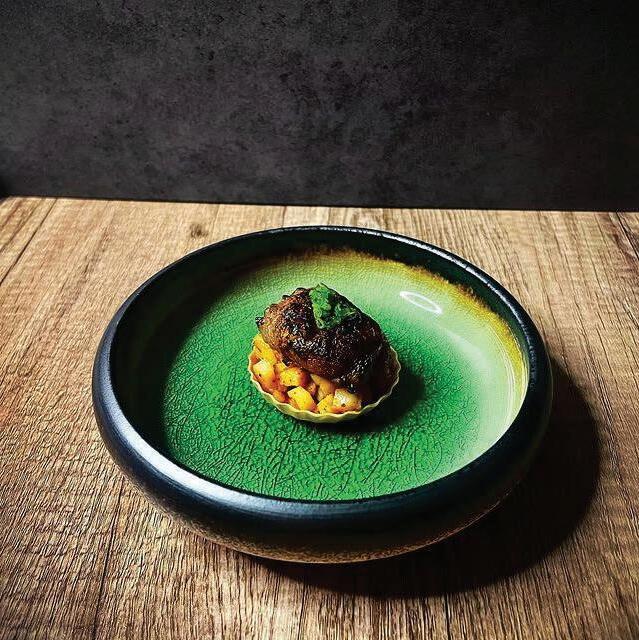 The standards are safe bets here, from appetizers like the samosas and the pillowy soft garlic naan to the paneer tikka masala or charred and juicy tandoori shrimp. But fun is where the fusion is, and at Amrut Fusion that usually involves cheese: The dosa quesadilla, a traditional rice flour crepe served with mint sauce and tamarind sauce, comes stuffed with American cheese; the paneer gulistani tikka sees melted mozzarella served between slices of charred paneer squares, all coated with a zesty sauce flavored with grilled peppers and onions. Meanwhile, the crispy momos (fried veggie dumplings), an assortment of chaat snacks and loaded french fries all partner well with the bourbon-focused bar program.