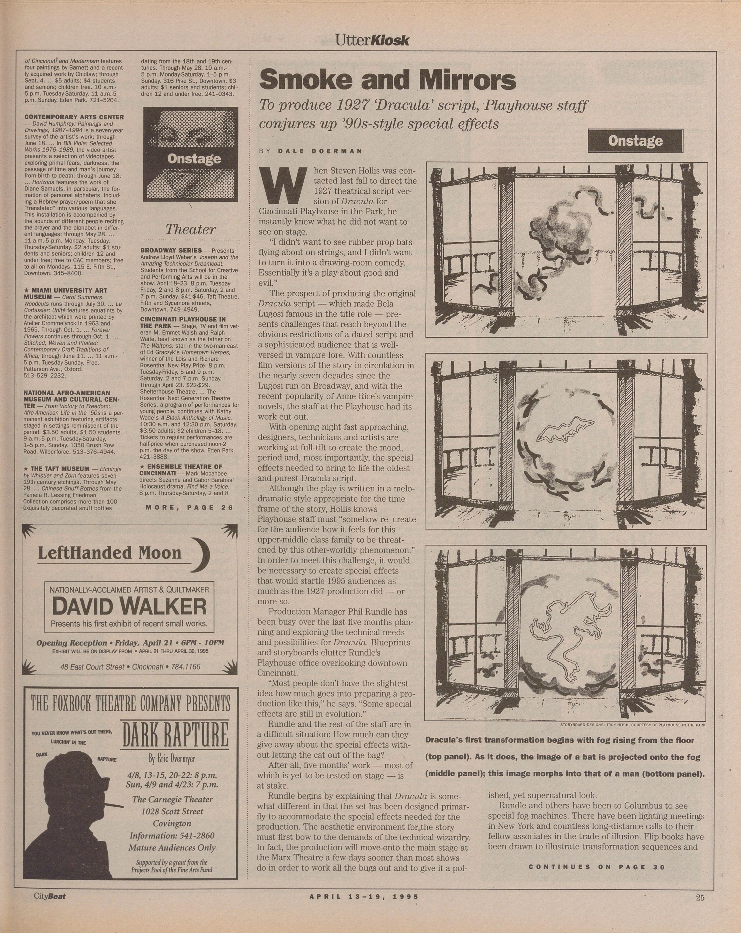 Onstage To produce the 1927 Dracula script for a 1995 audience, Playhouse in the Park special-effects designers have to rely on more than smoke and mirrors 25